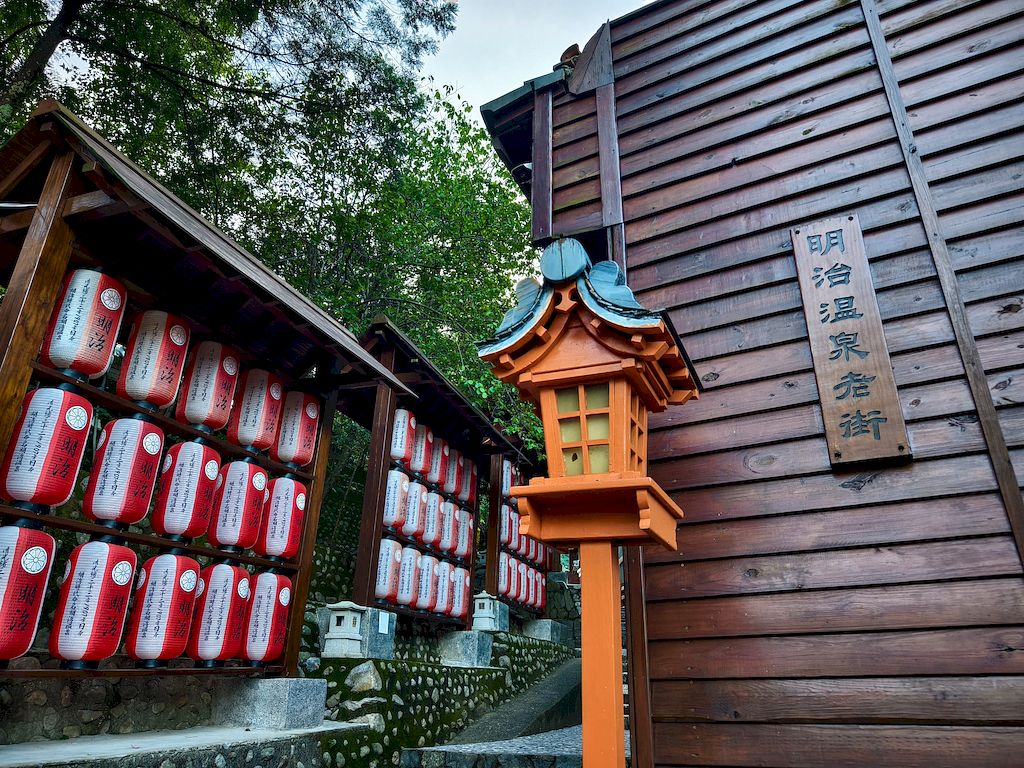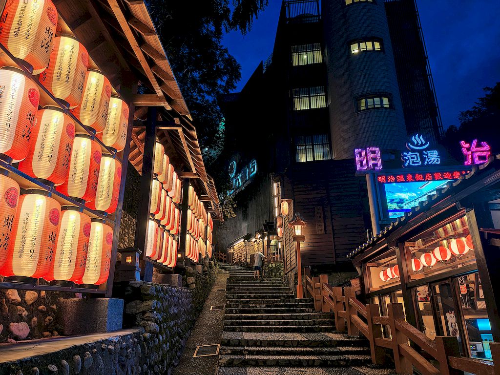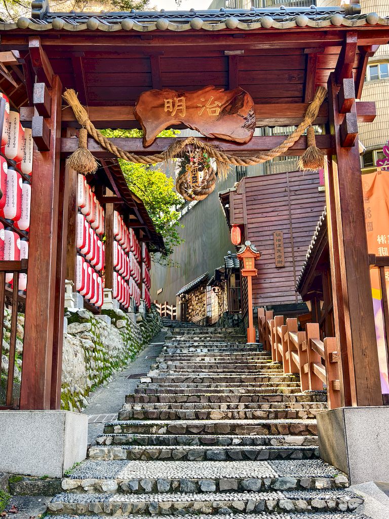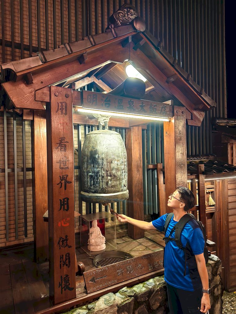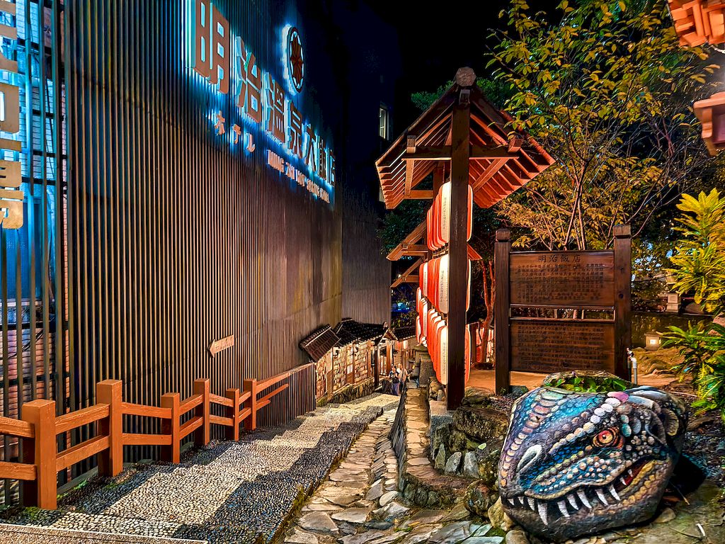 「明治溫泉老街」是老字號飯店「谷關明治溫泉飯店」的環境設施之一,也是大家必訪的打卡景點,這裡的石階步道裡將日式燈籠、日本許願繪馬、許願鐘等元素結合,濃濃日式風情,宛如置身日本的感覺。