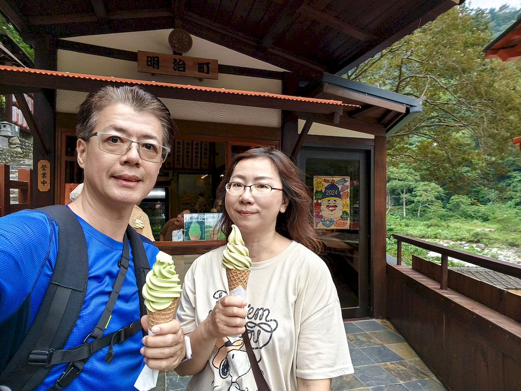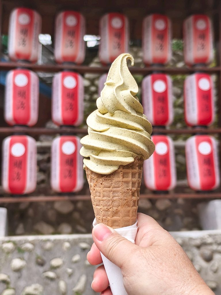 #153 老街上新開了一間「明治町」,主要販售在地特色霜淇淋、梨山茶以及咖啡,店內也有提供座位,讓遊客可以小歇喝杯飲品或者品嚐谷關限定的五葉松霜淇淋。