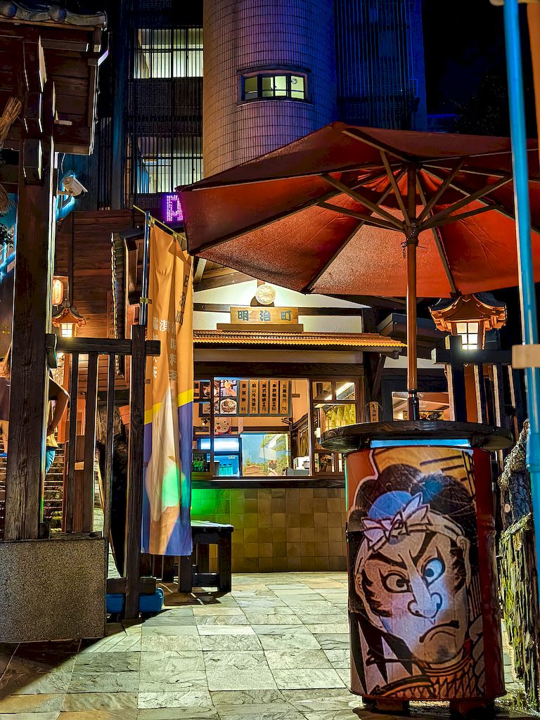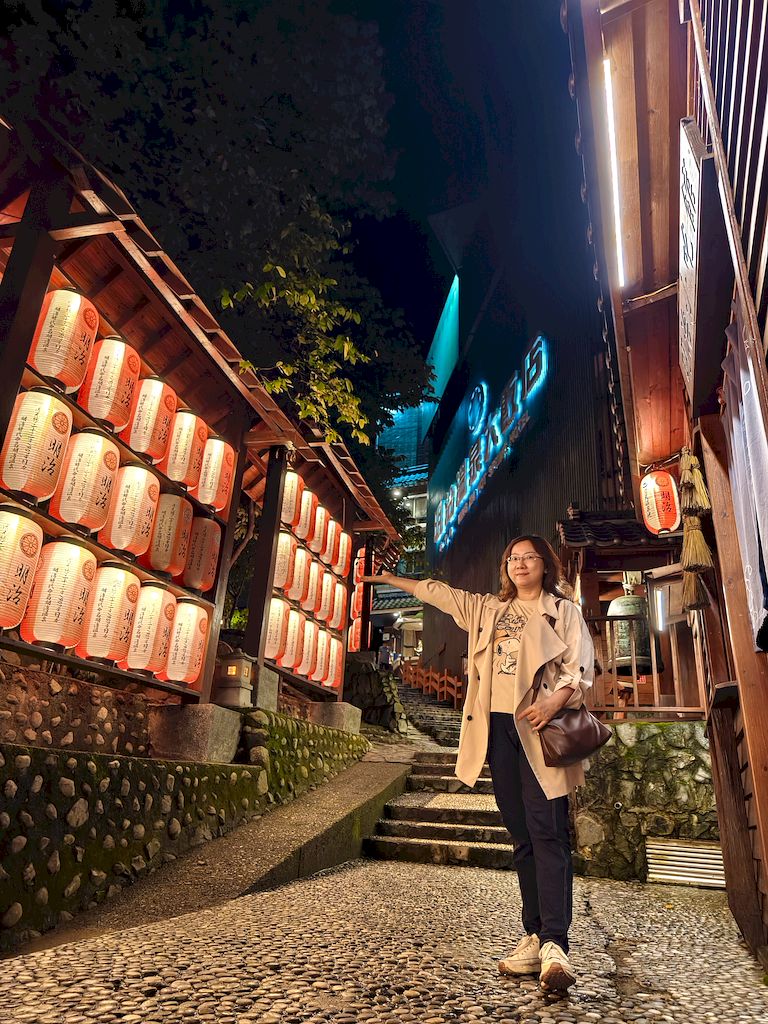 #165 夜晚點燈了之後的明治溫泉老街又是完全不一樣的面貌,一定要白天逛一次,晚上再逛一次才算是完整體驗喔!