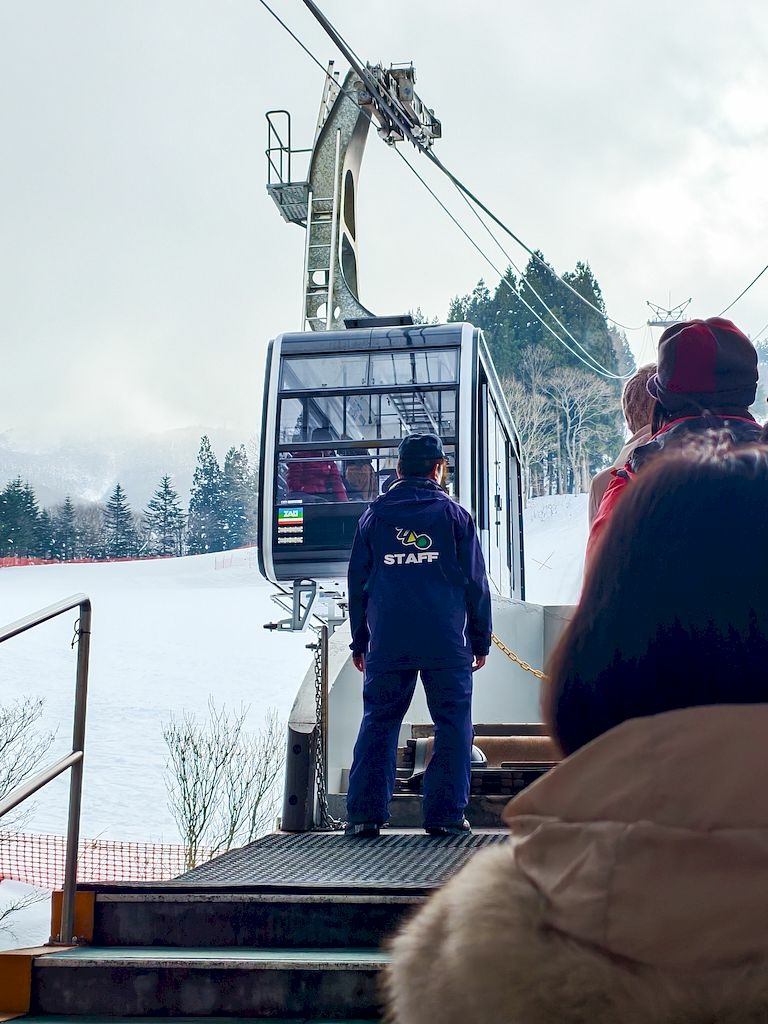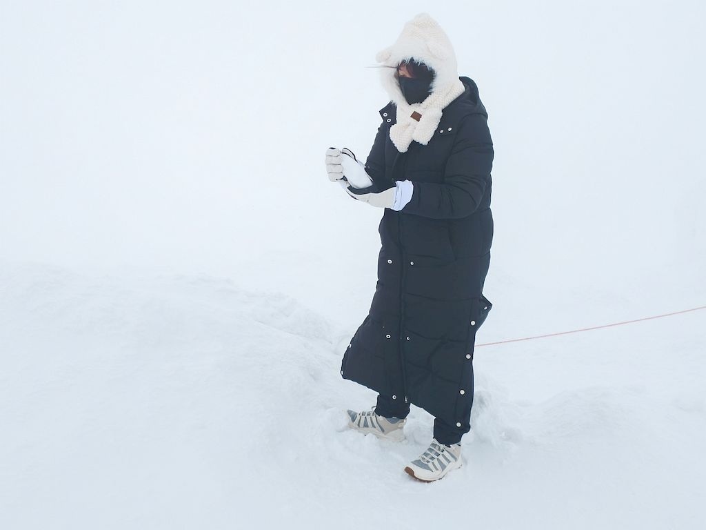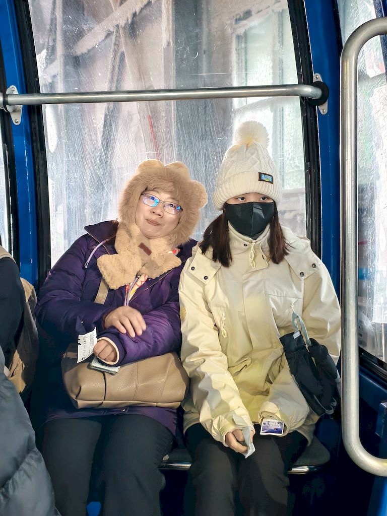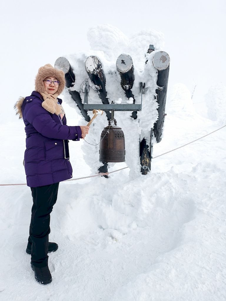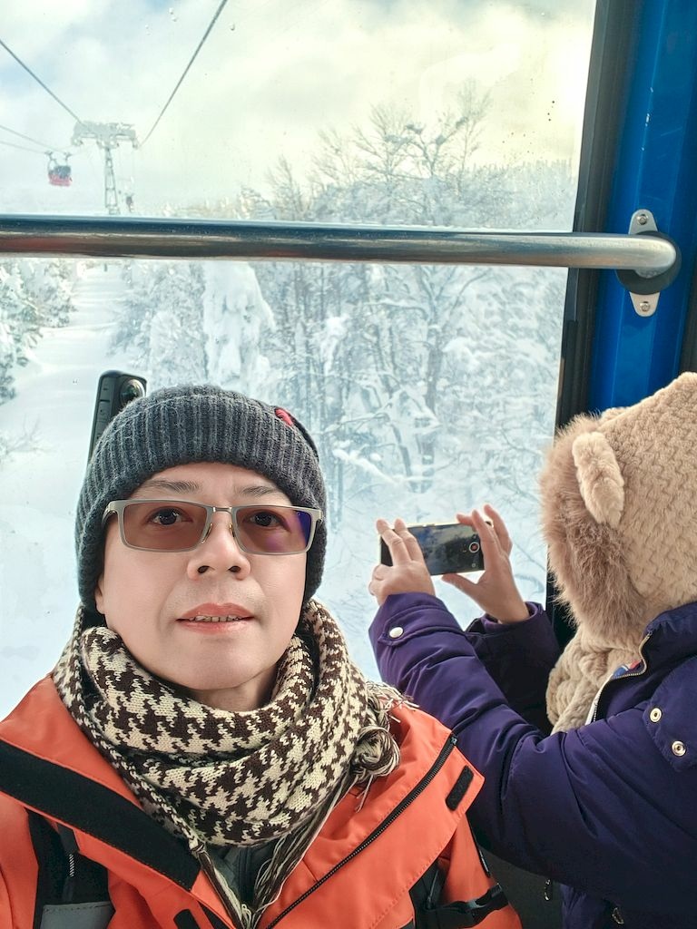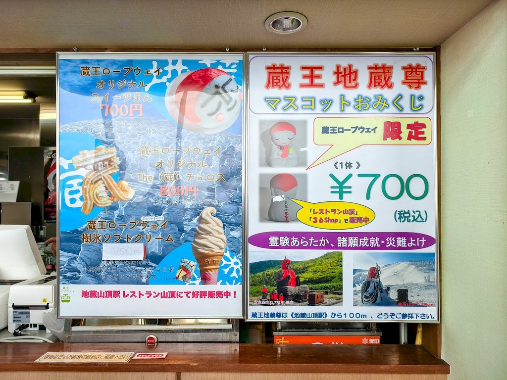 要親眼目睹「藏王樹冰」的真面目需要搭乘纜車,而且是兩段式纜車。在山腳的藏王山麓站搭乘第一段纜車,抵達樹冰高原站後,須再換乘第二段纜車登上最後的地藏山頂站,期間可從車窗俯瞰到整座山峰的樹冰全景,稱為「樹冰原」。纜車一路爬升,從標高855公尺→1331公尺→1661公尺,真的超級無敵冷!