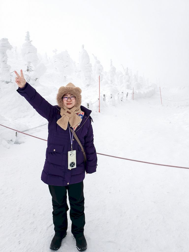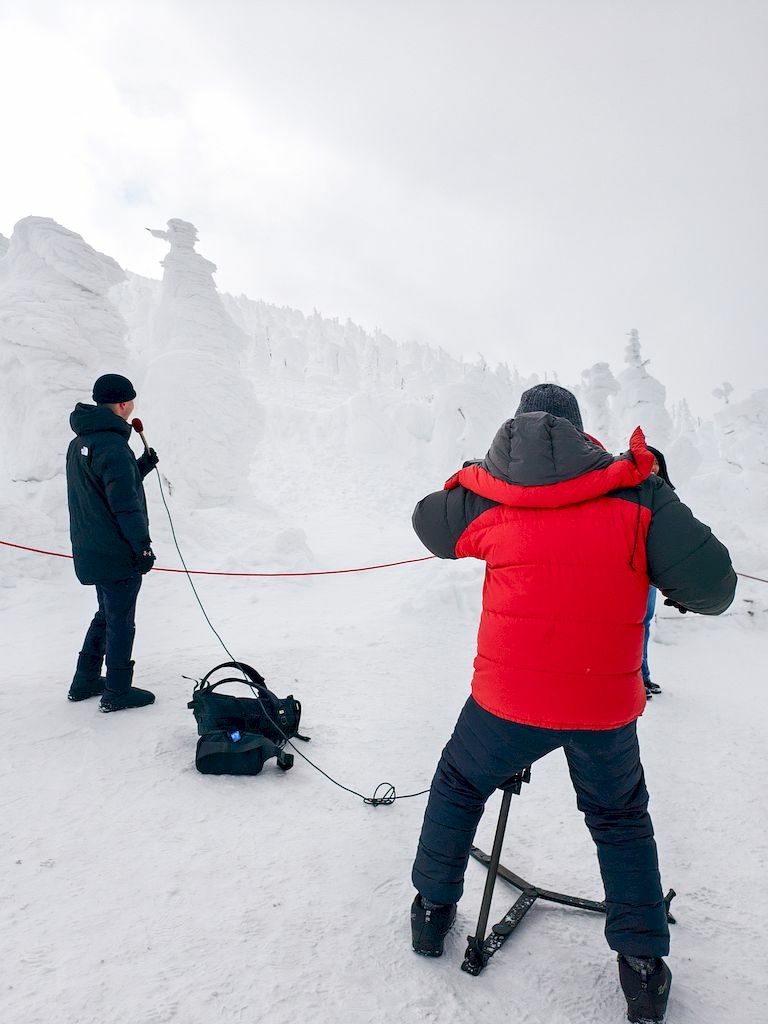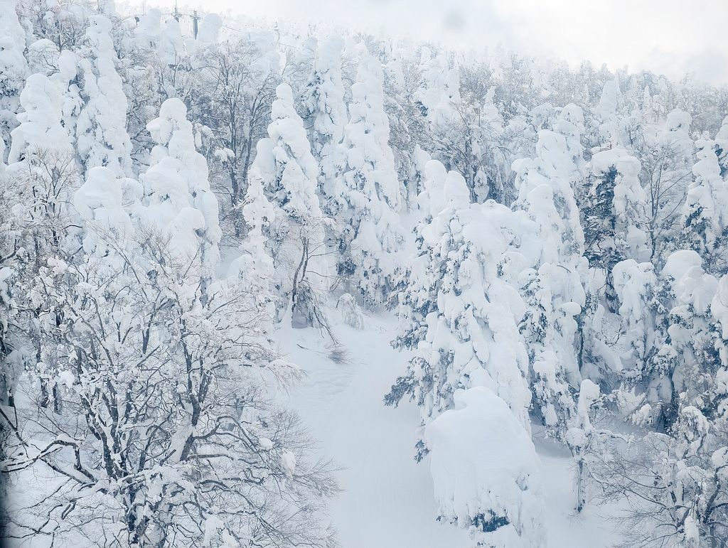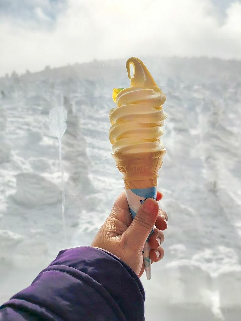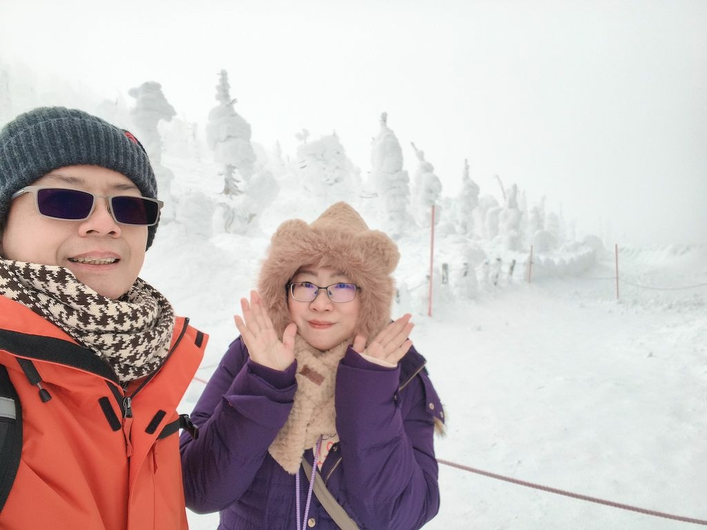 再不看就要因為地球暖化而消失的絕景,也是此次日本東北之旅的重頭戲之三!「藏王樹冰」是山形縣藏王冰原上冬季最特殊的自然奇景,大約從每年11月底到12月初開始形成,在此時期雲粒霧粒隨著冬季東北季風被帶來,逐漸在針葉樹上披著冰雪,1、2月期間,藏王冰原原本翠綠的蒼松便完全為白雪包覆,或如人形、野獸,或狀若土地公,形狀千奇百怪,日本民間稱它為「雪怪」。