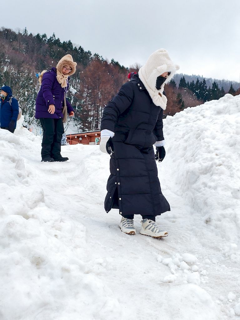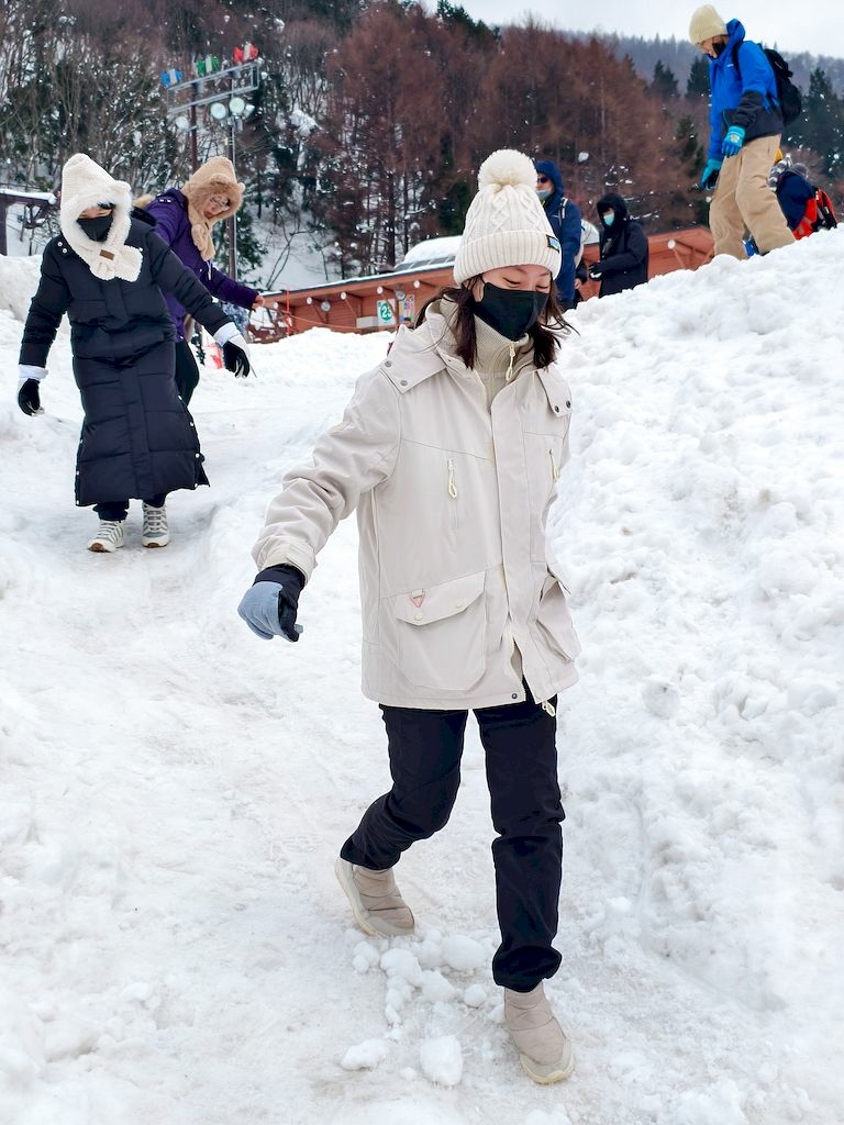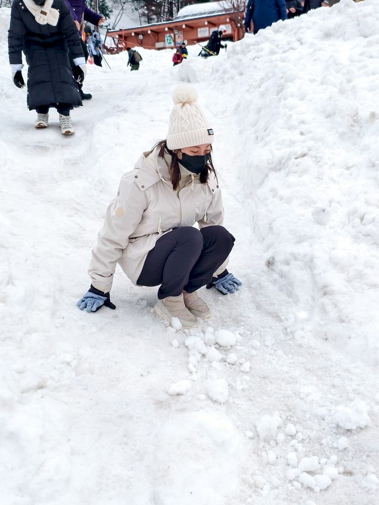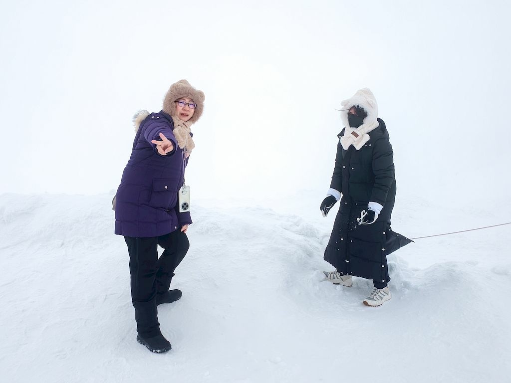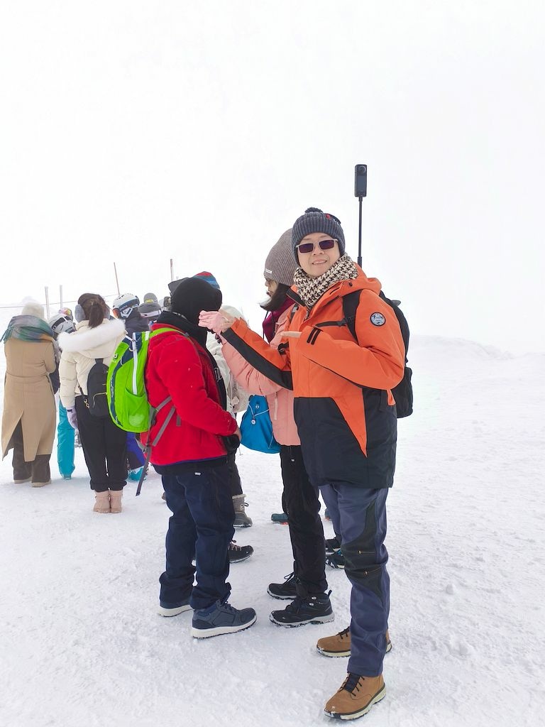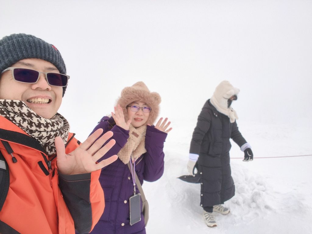 導遊去領預訂的團體票,要我們先在停車場周圍玩玩雪。