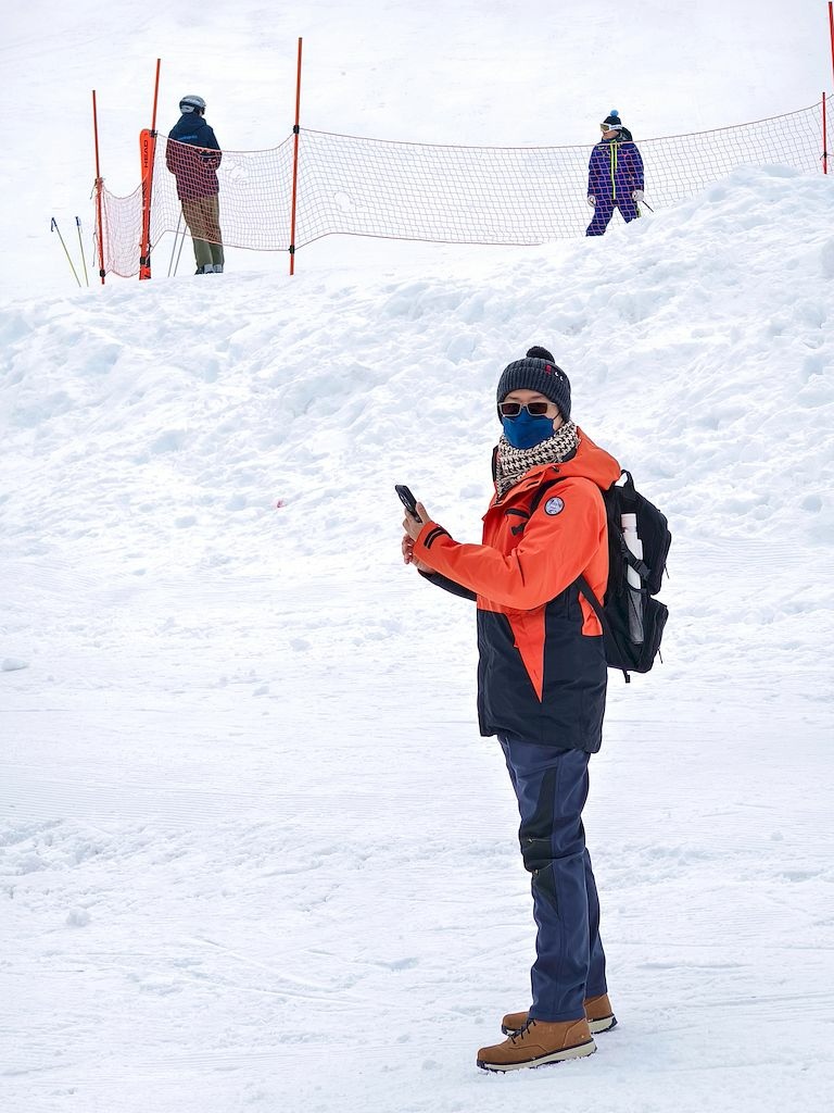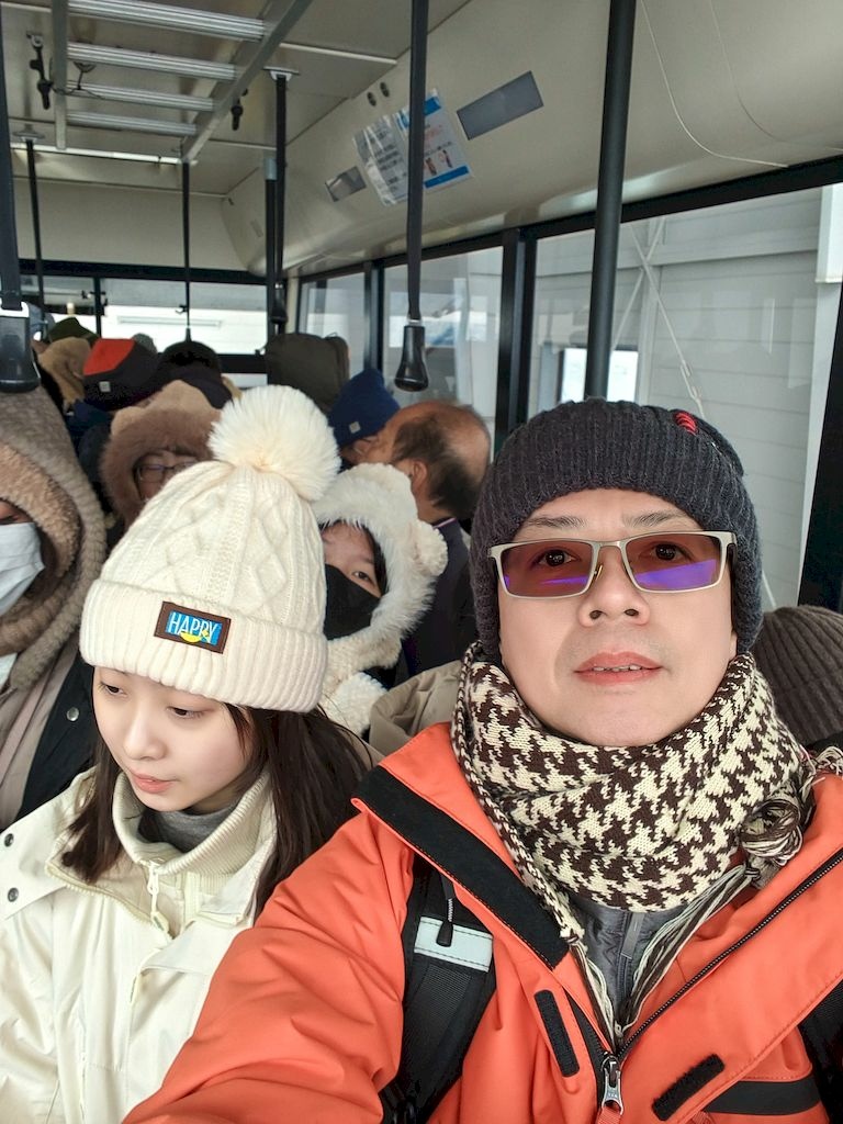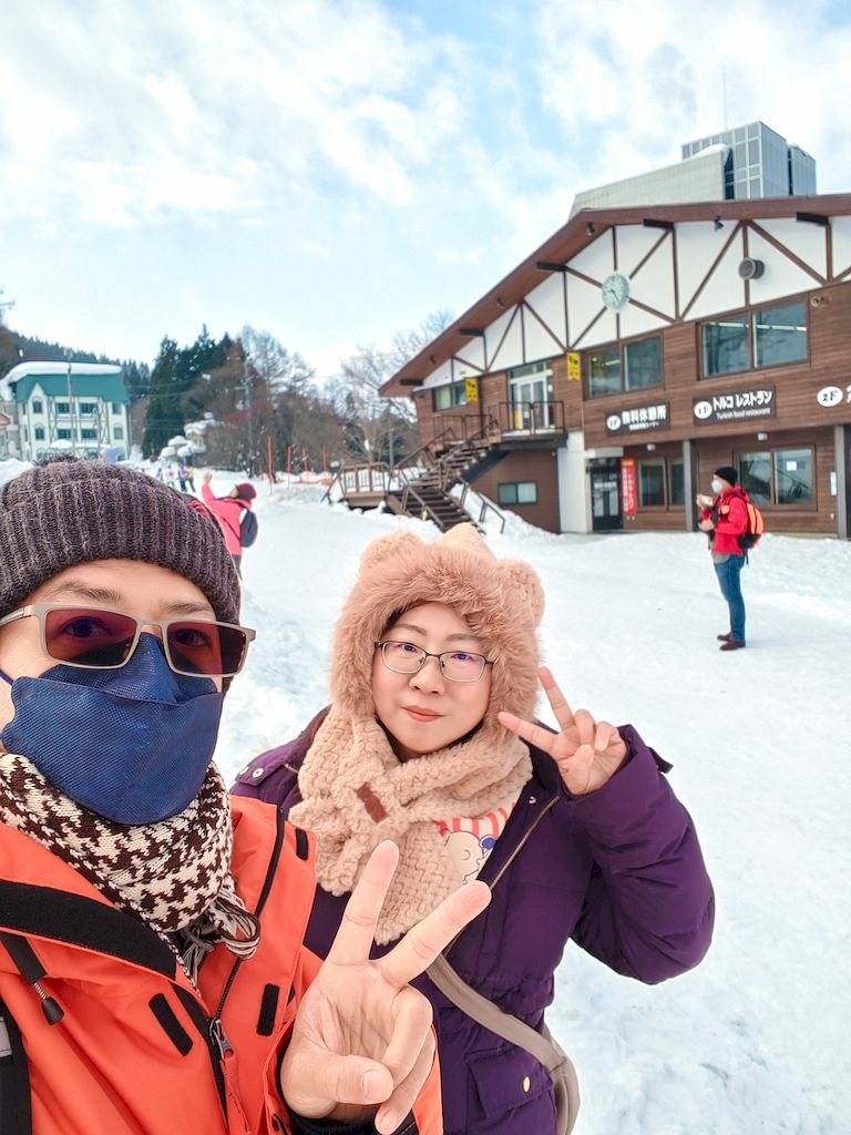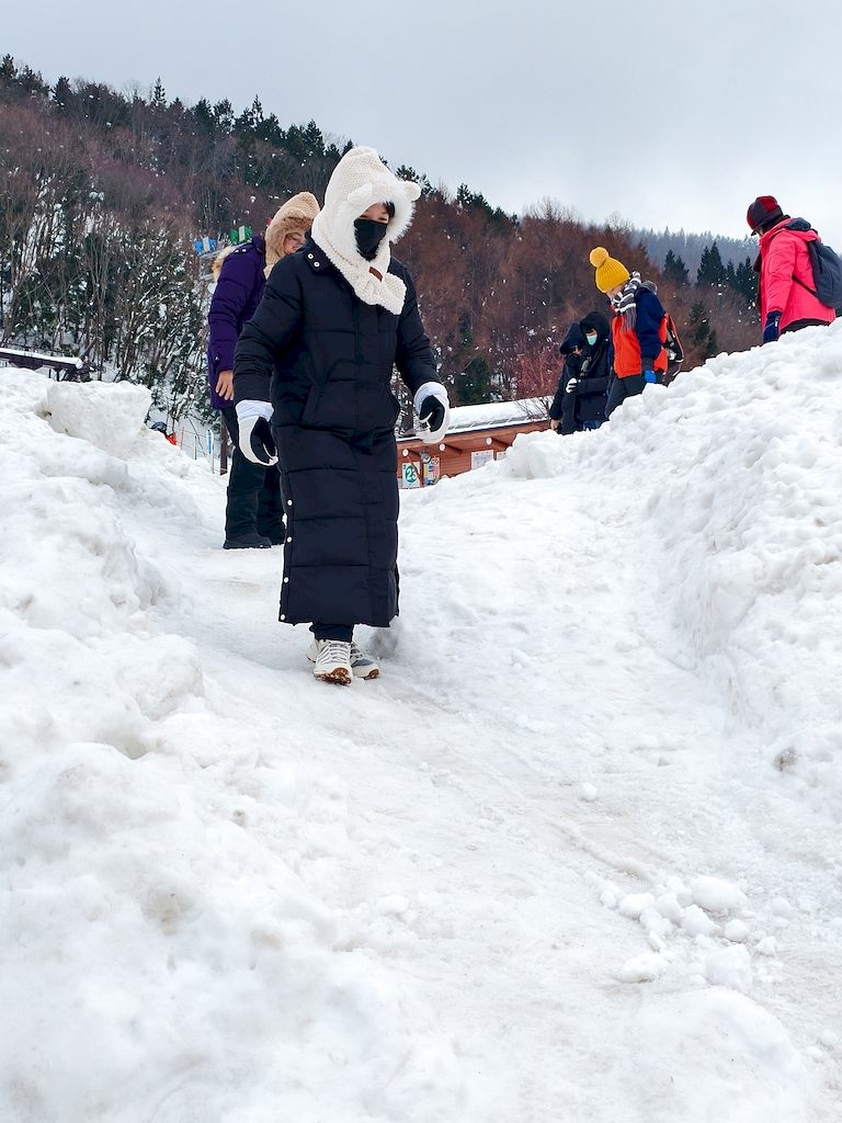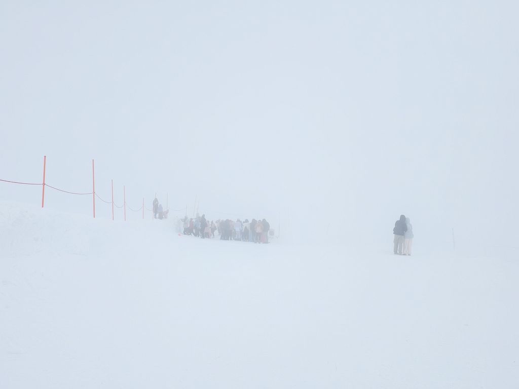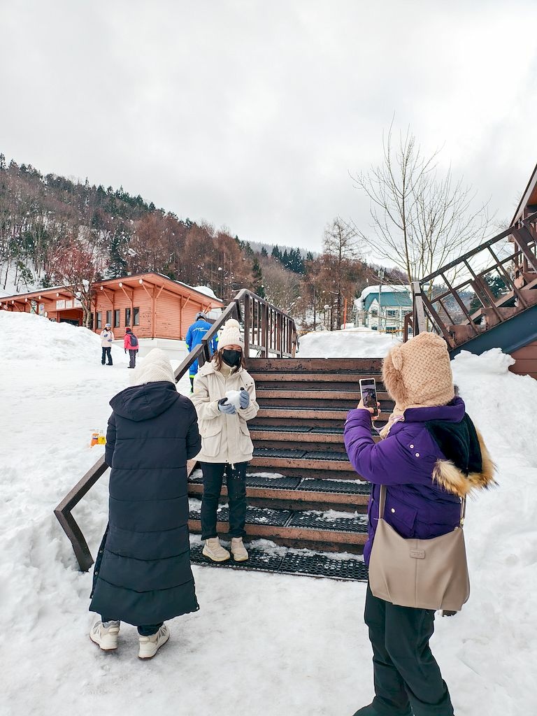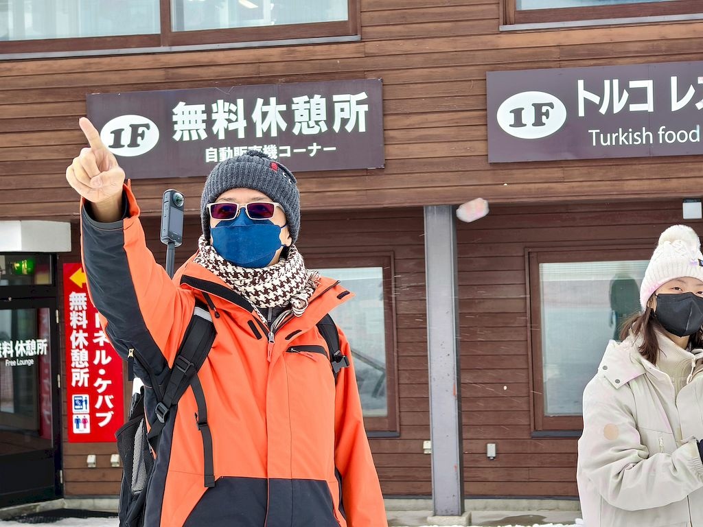 導遊去領預訂的團體票,要我們先在停車場周圍玩玩雪。
