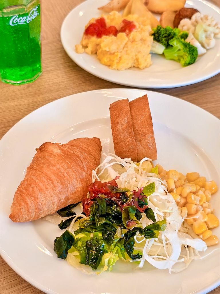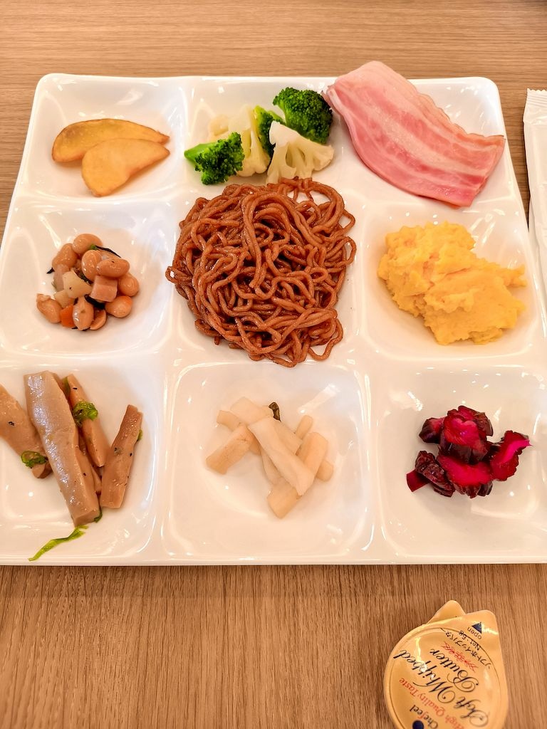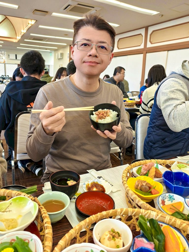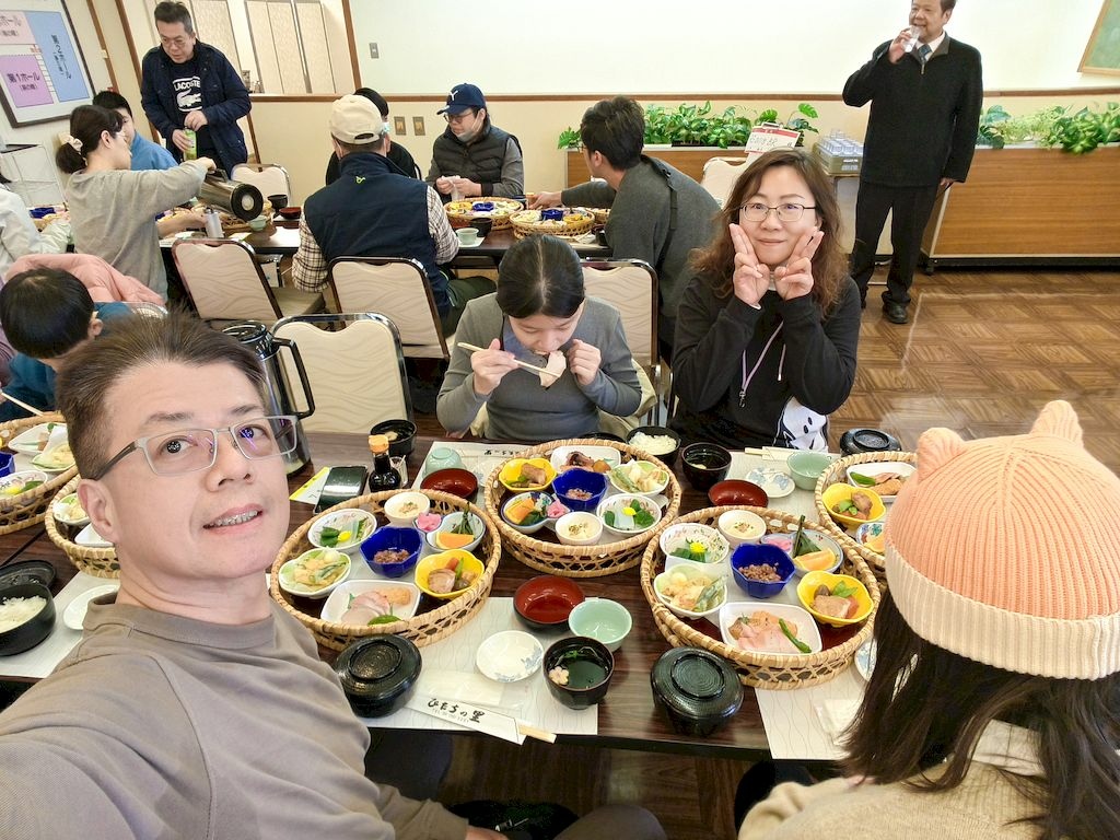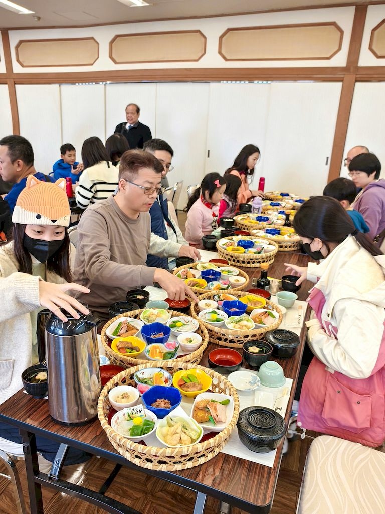 溫泉飯店自助餐是在大宴會廳吃,這還是我們第一次在榻榻米上吃自助餐(進入餐廳前都要脫鞋),是很奇特的體驗,菜色也非常豐富。