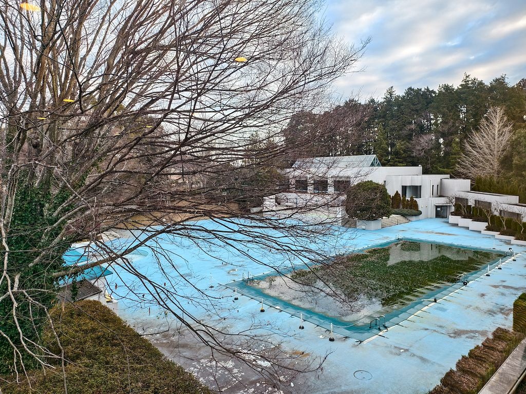 結凍的泳池。