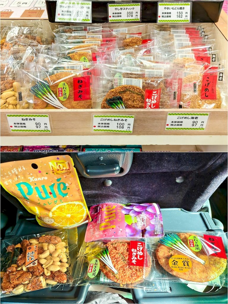 在休息站買了一些零食…我最喜歡吃日本的仙貝,隨手挑了幾個居然口味都很好吃!