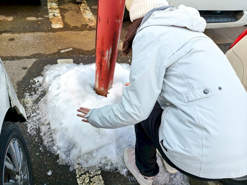 停車場的角落都堆了雪,大家看到都很興奮。