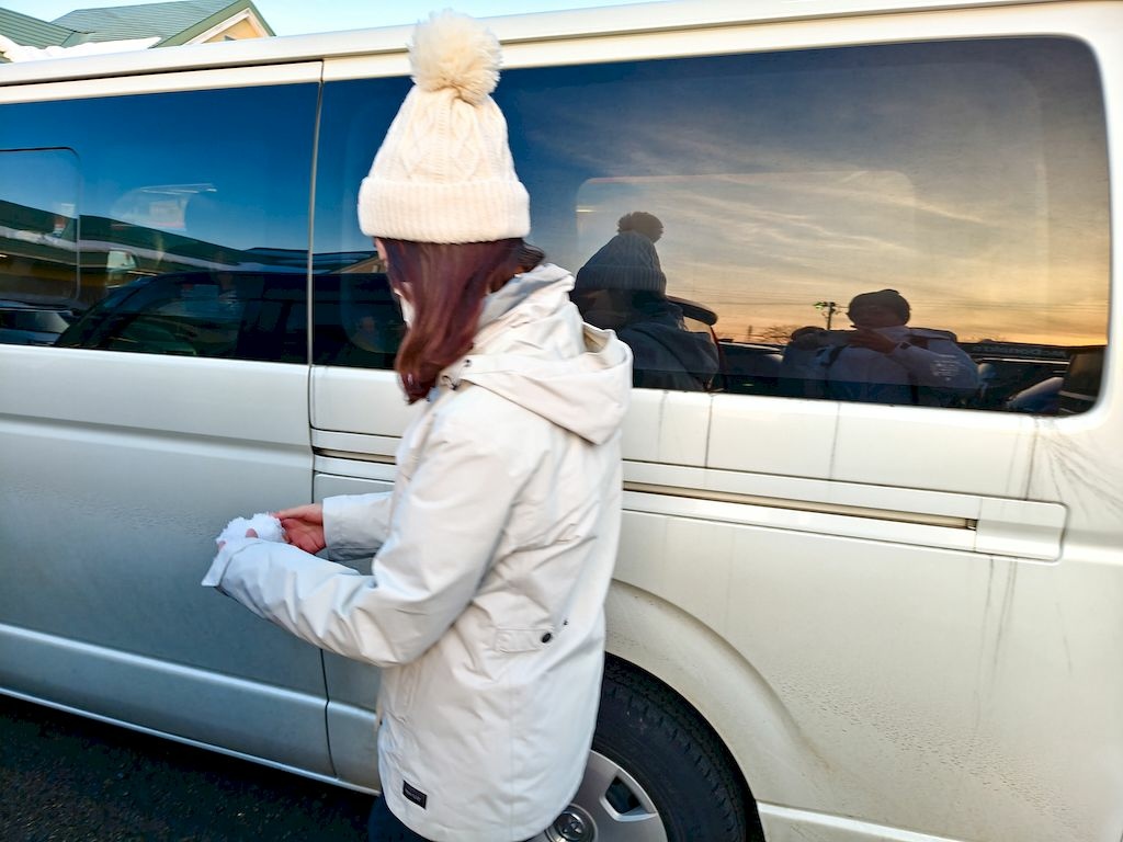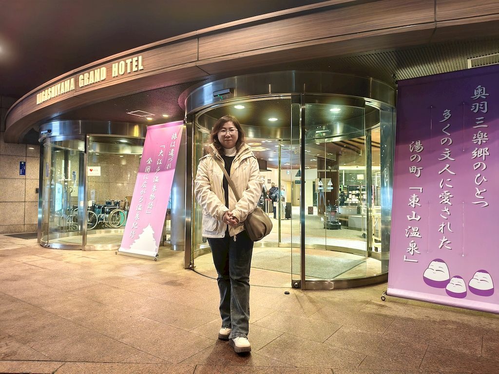 真的好巧,我們一抵達飯店門口就飄起雪來,大家都好驚喜,因為這是我們這一趟六天行程中碰到的唯一一場雪。