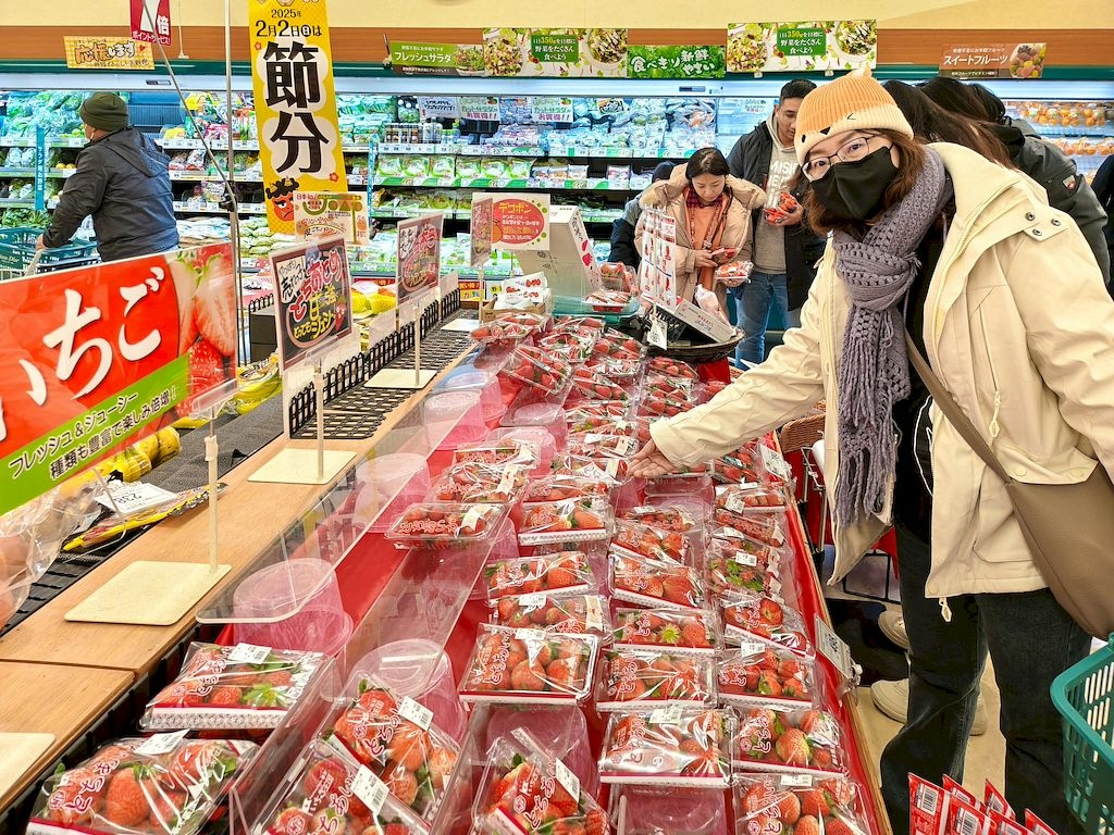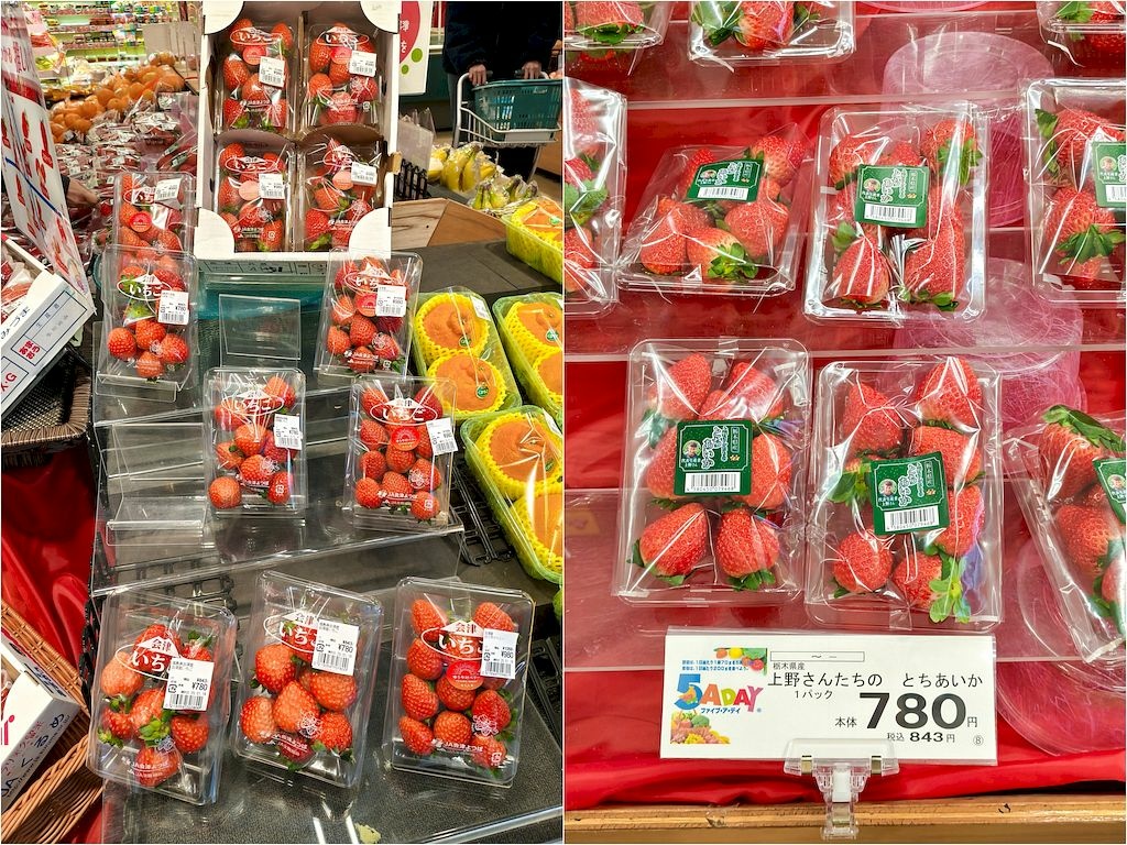 吃完飯在餐廳一樓超市又買了草莓,這次我們選了在地的飯豐町產草莓。