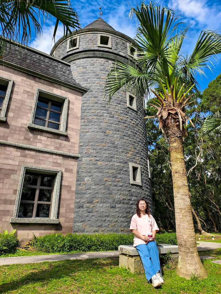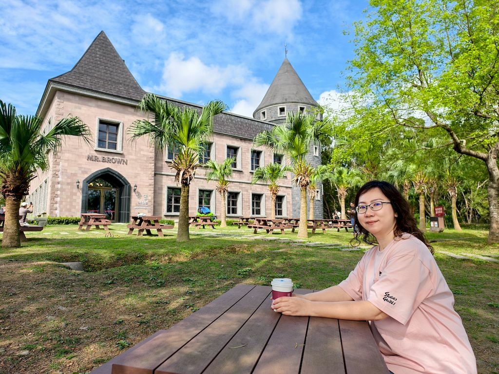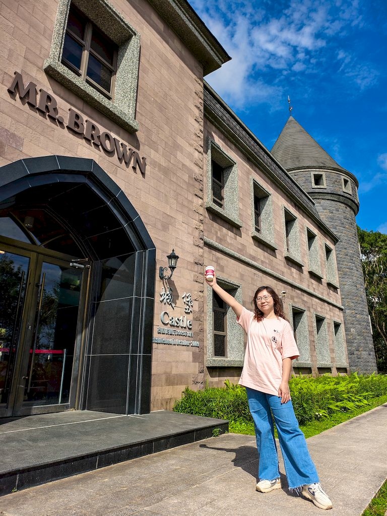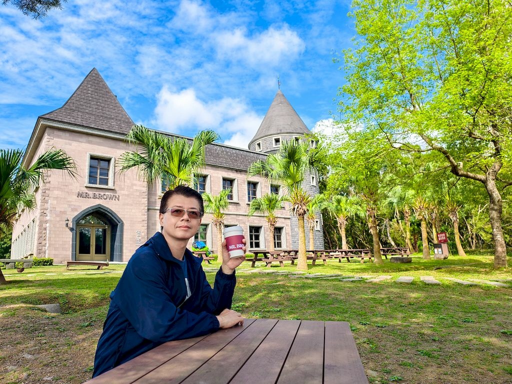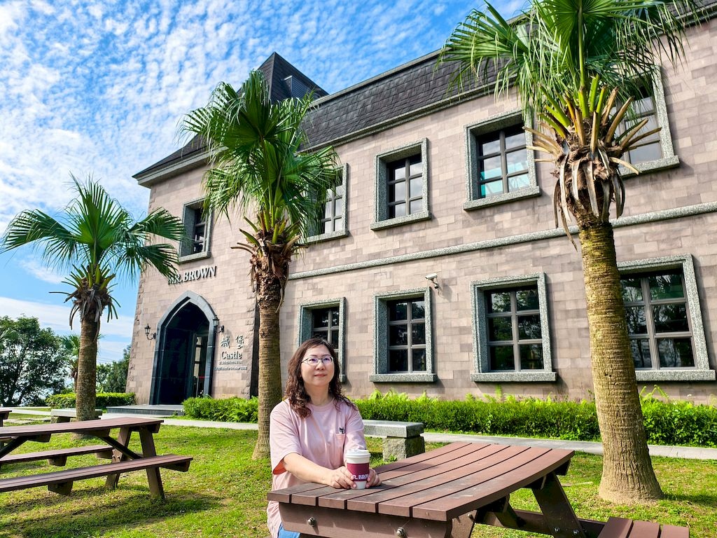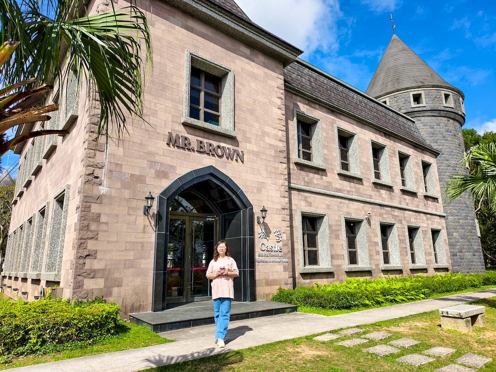 「金車伯朗咖啡城堡」地理位置非常棒,位於外澳的半山腰上,下方就是宜蘭頭城烏石港與外澳沙灘,可以眺望龜山島,風景優美。城堡(一館)總共有三層樓:一樓是點餐與用餐區,還有金車威士忌酒廠的橡木桶,二樓也是用餐區,有窗戶可以欣賞風景,比較多人在二樓用餐,遊客可以到頂樓拍照,蘭陽風景一覽無遺。咖啡城堡有供應早、午餐和下午茶,還有手工餅乾、蛋糕和咖啡與飲料。