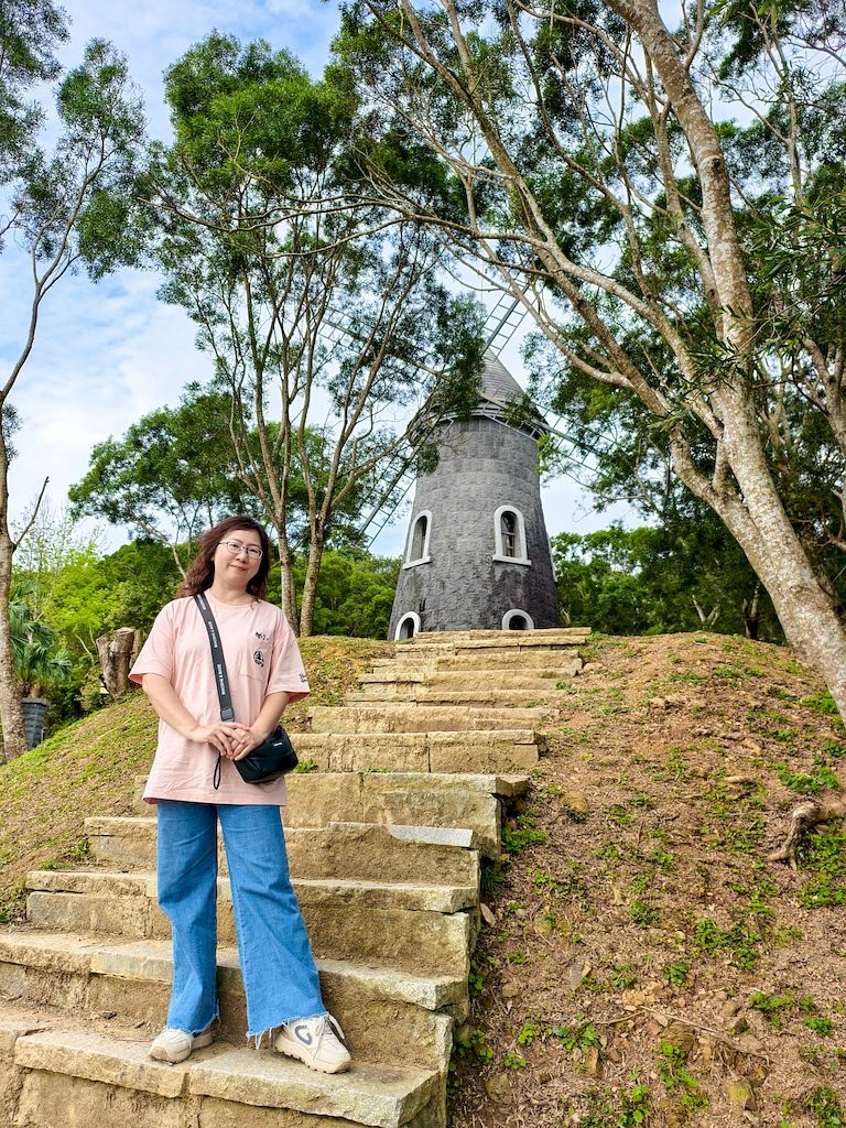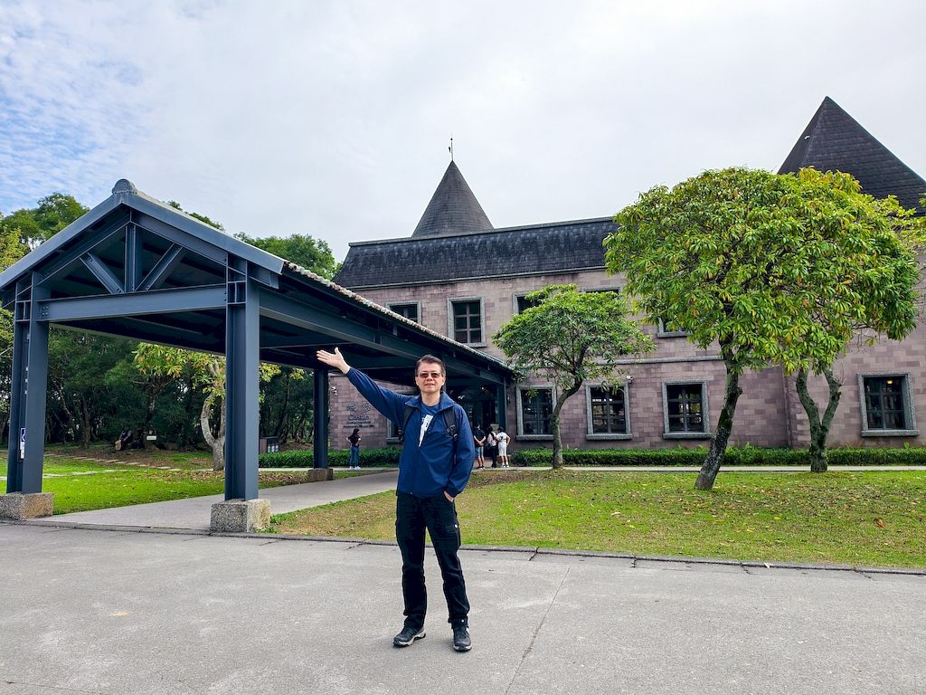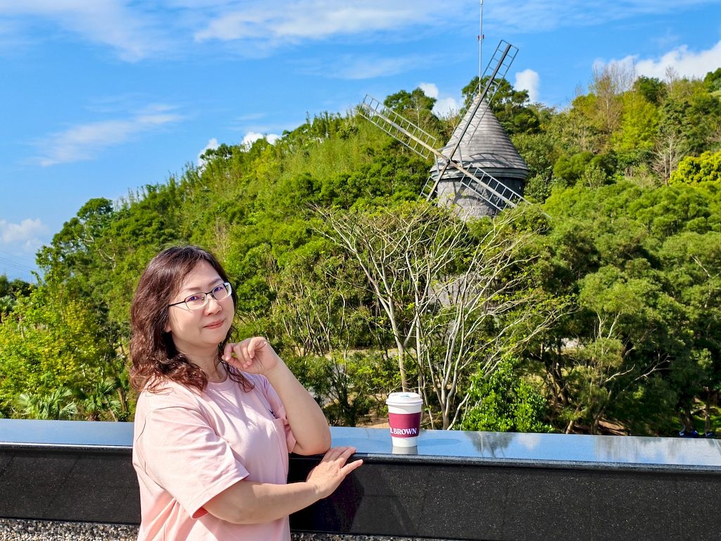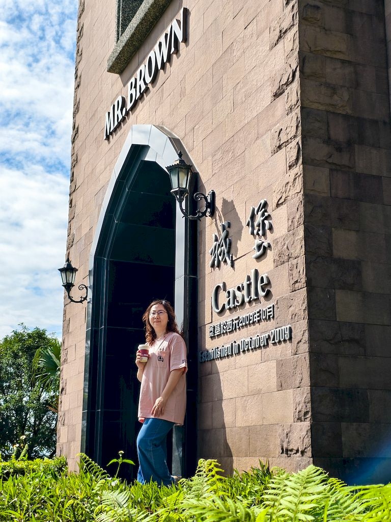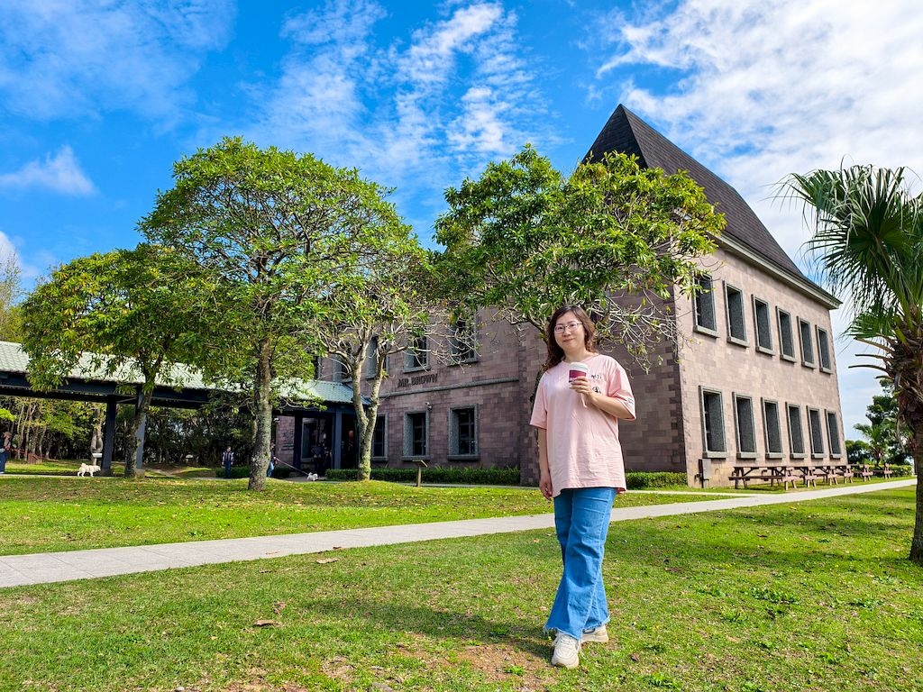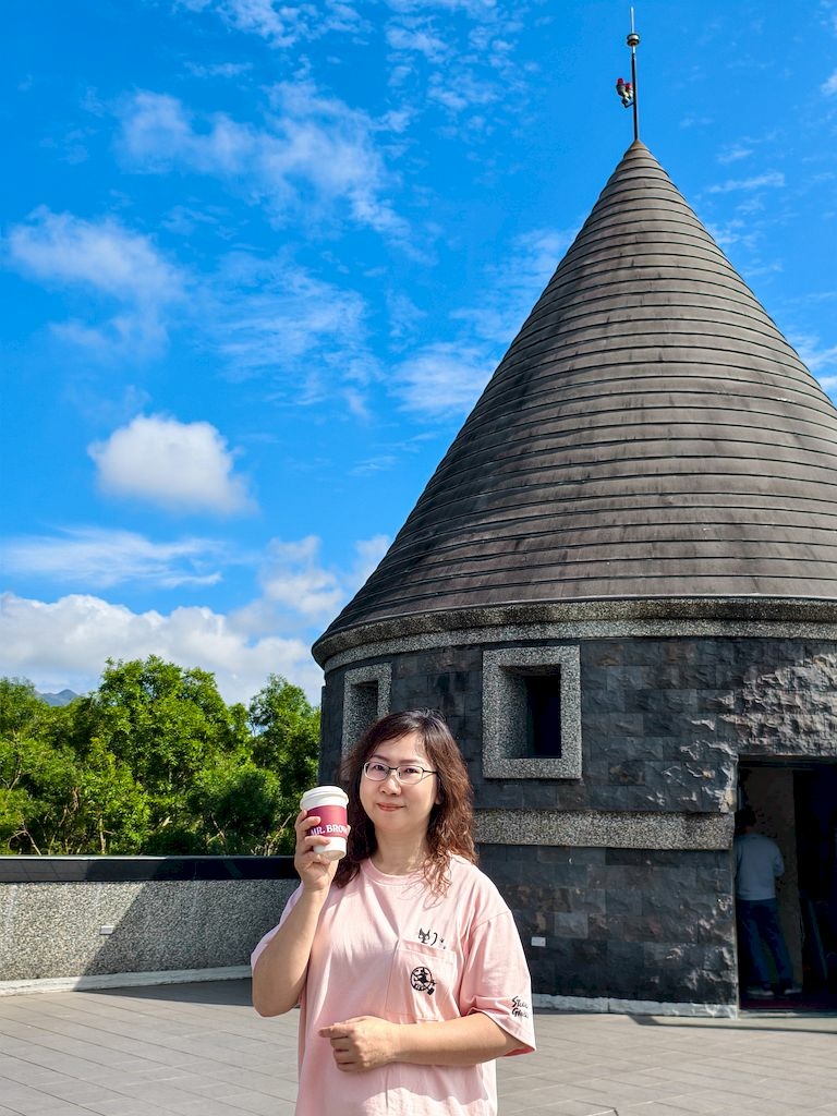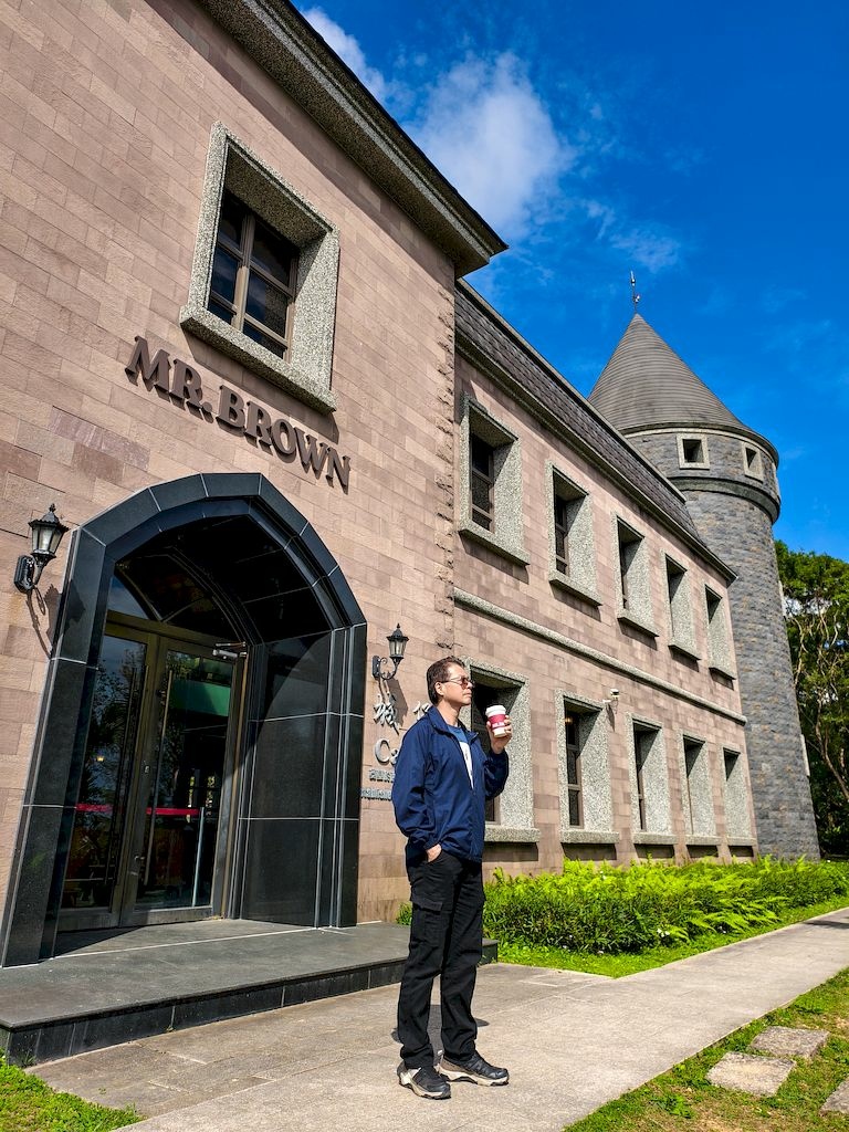 「金車伯朗咖啡城堡」地理位置非常棒,位於外澳的半山腰上,下方就是宜蘭頭城烏石港與外澳沙灘,可以眺望龜山島,風景優美。城堡(一館)總共有三層樓:一樓是點餐與用餐區,還有金車威士忌酒廠的橡木桶,二樓也是用餐區,有窗戶可以欣賞風景,比較多人在二樓用餐,遊客可以到頂樓拍照,蘭陽風景一覽無遺。咖啡城堡有供應早、午餐和下午茶,還有手工餅乾、蛋糕和咖啡與飲料。