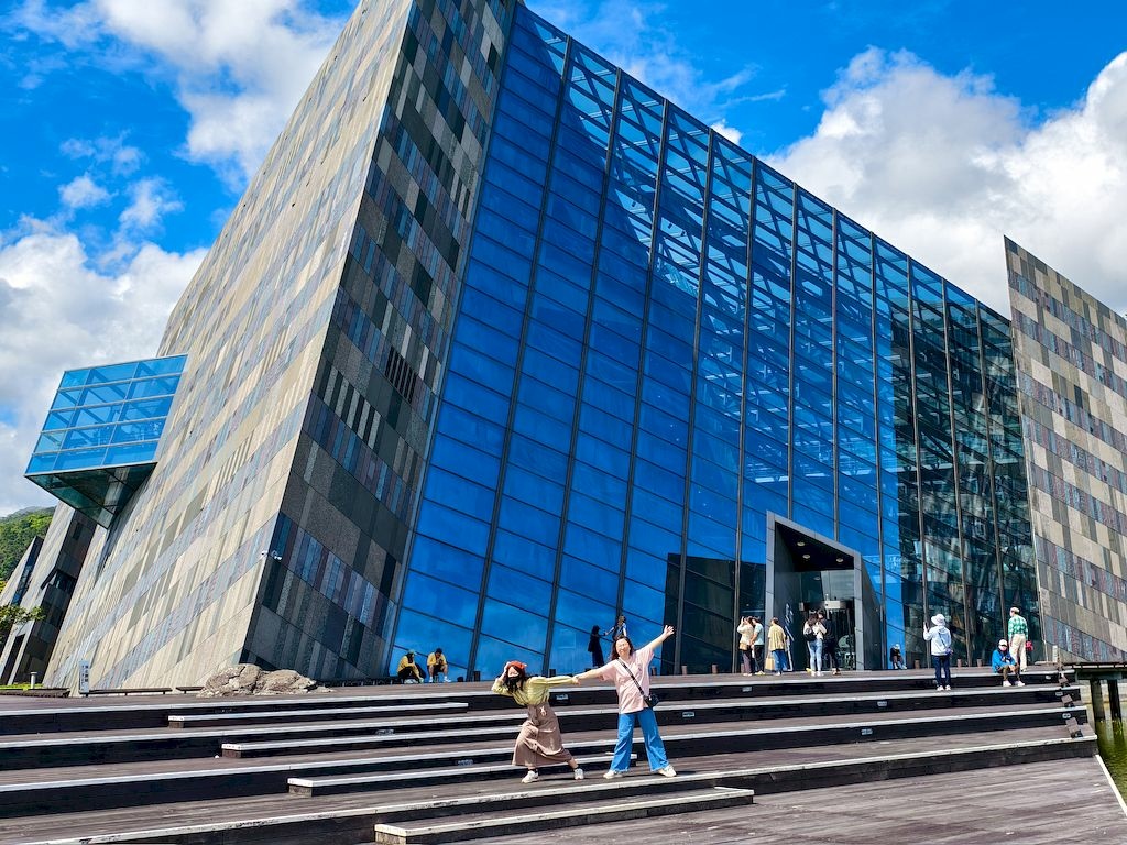 這還是我們家第一次造訪「蘭陽博物館」,博物館的主體建築以東北角海岸的單面山作為設計博物館量體的根源,目的在於突破形式,以地理符號作為反映文化的出發點,將蘭陽博物館建築與自然地景相結合。