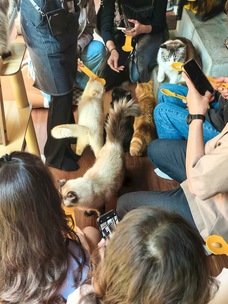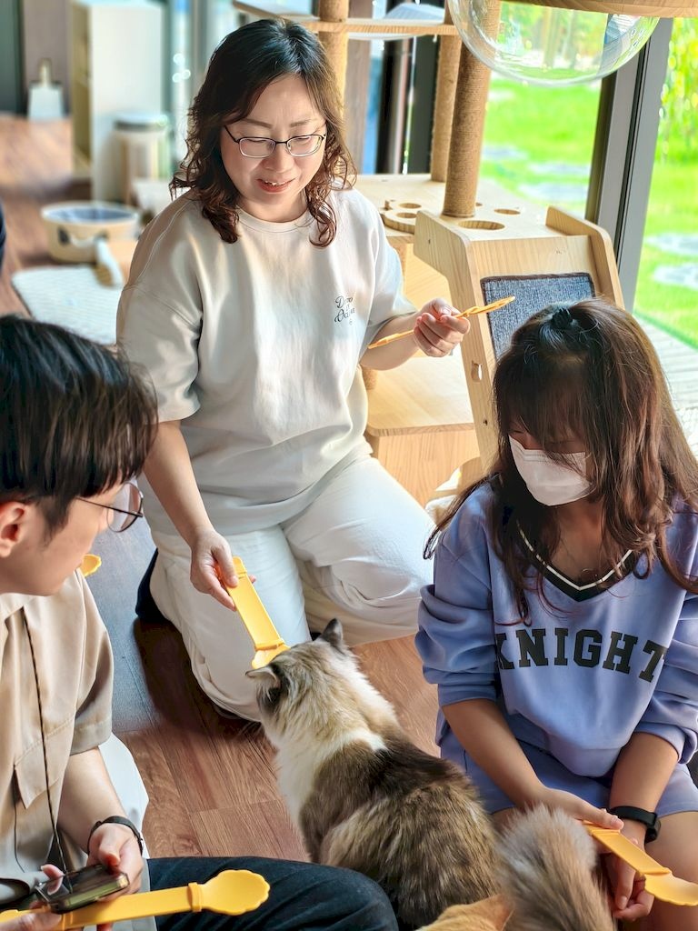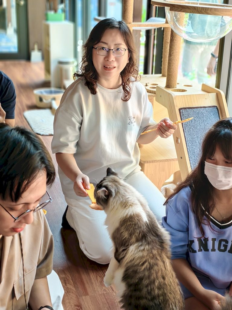 貓咪親近時間,美容師講解貓咪之後會發給每個人一點點肉泥,讓大家享受餵食貓咪的樂趣,真的超療癒的!