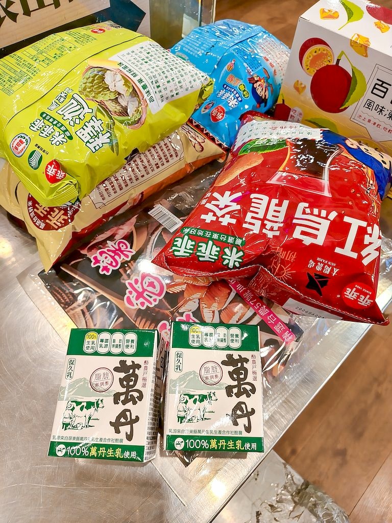 我們買了一些"奇怪"口味的乖乖,結帳滿200就送萬丹保久乳。