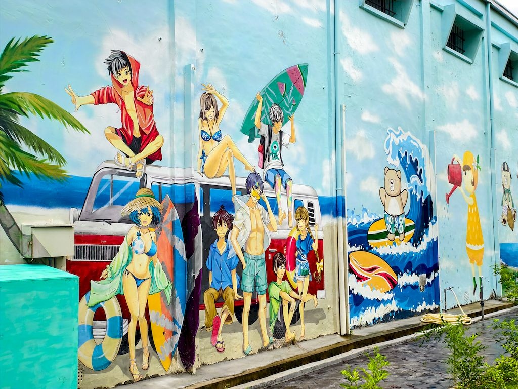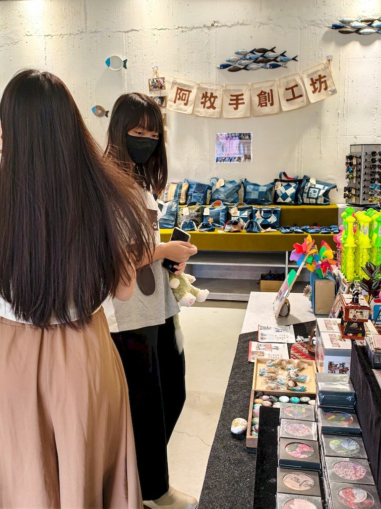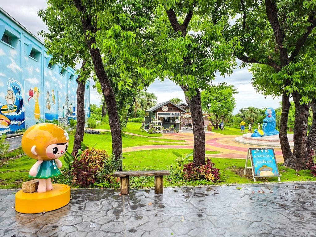文創園區是東河鄉農會利用舊穀倉重新整修,到處都有彩繪可以拍照,館內則販售不少文創商品,有各種玩具、服裝配件、藍染飾品等。