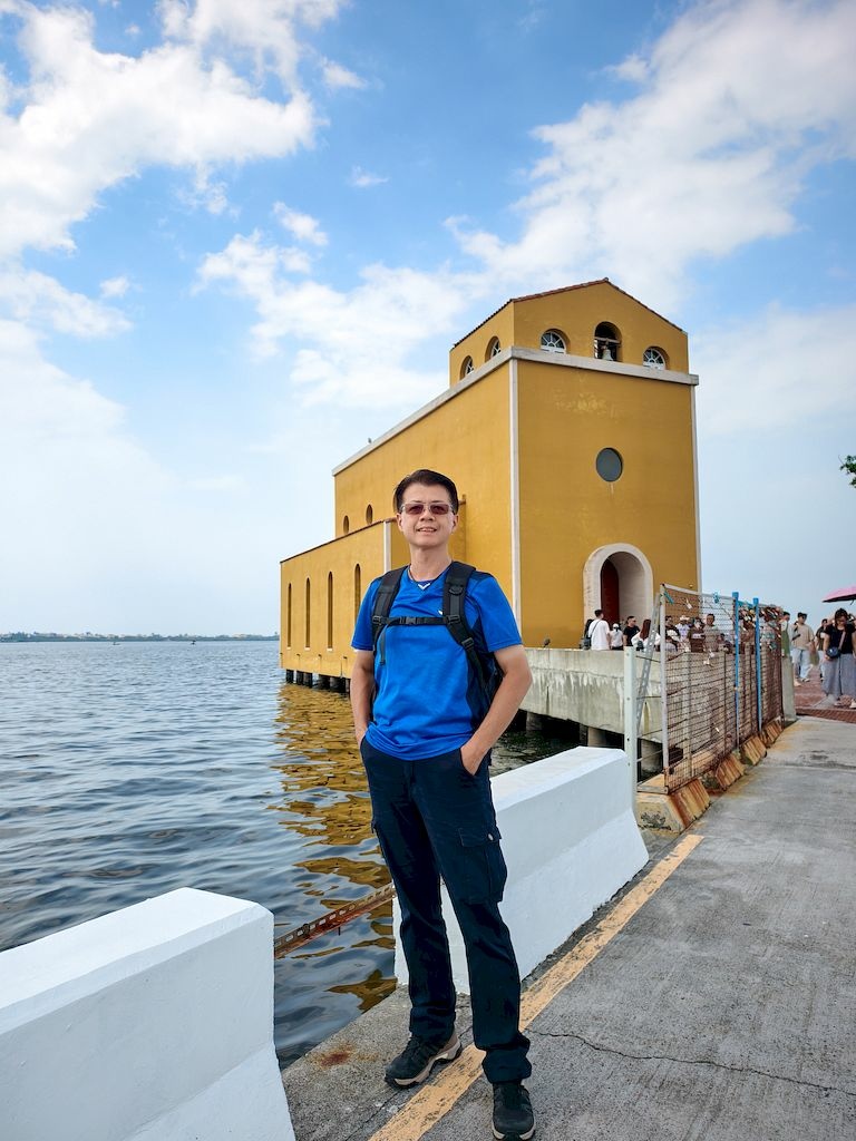 矗立在大鵬灣的海上教堂,挑高的屋型,童話般的鵝黃色建築外觀搭配粉色系的內裝,是大鵬灣最夯的打卡景點之一。