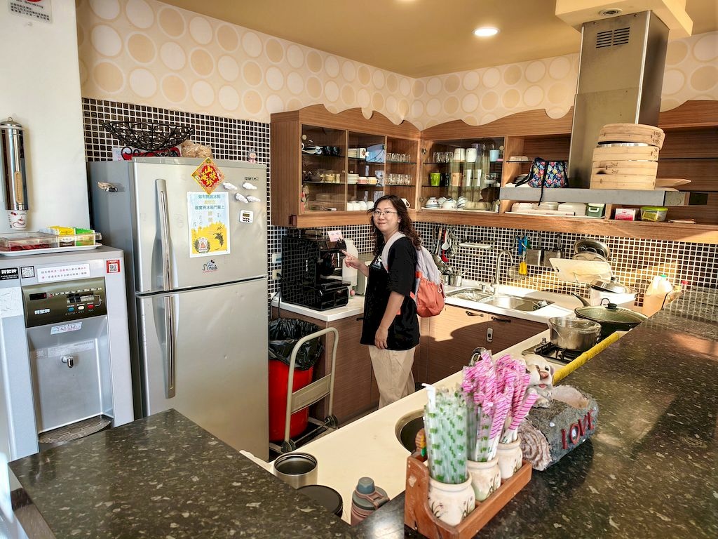 一樓大廳旁是廚房,有一台咖啡機,想喝咖啡自己來~