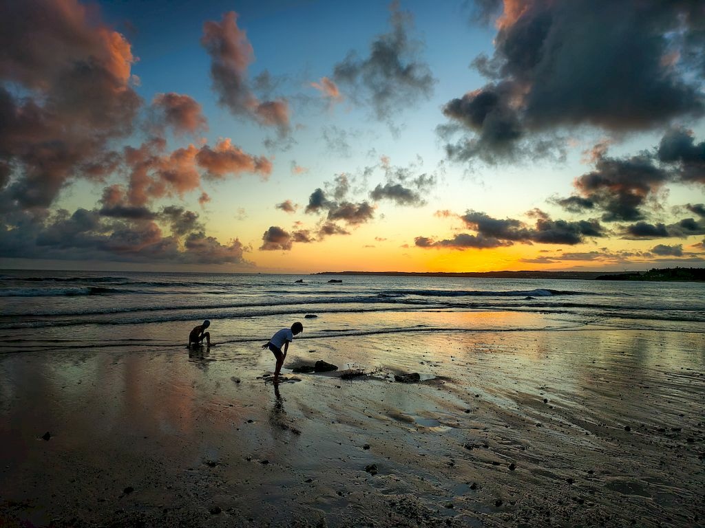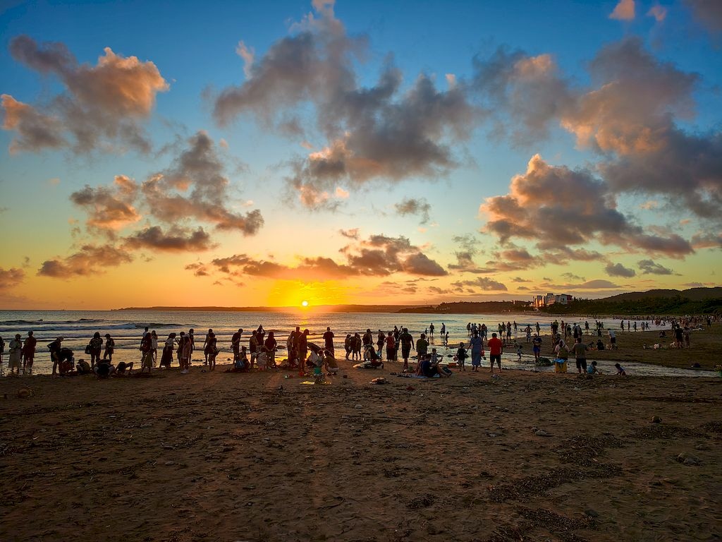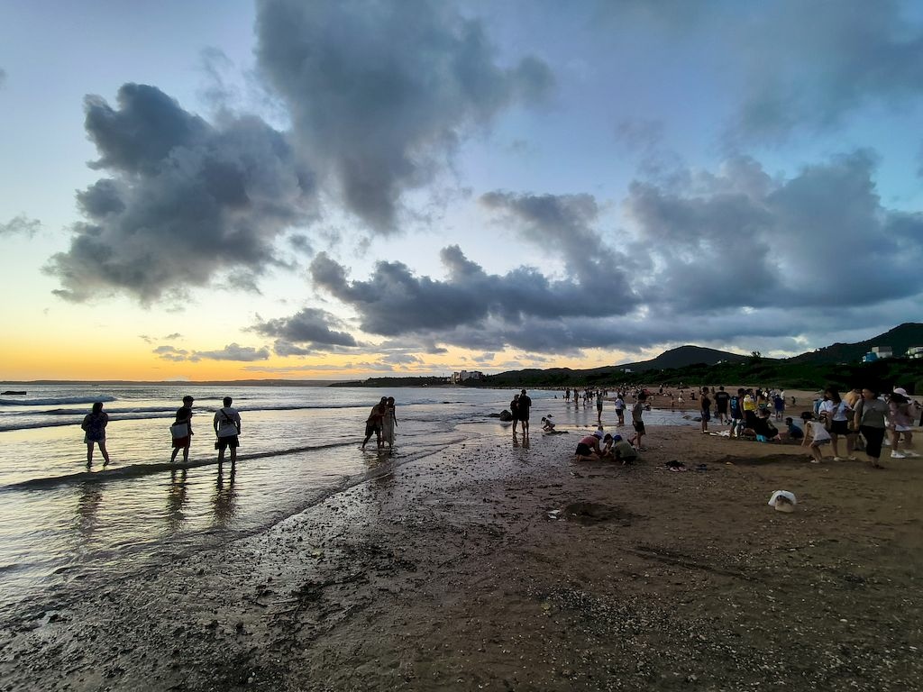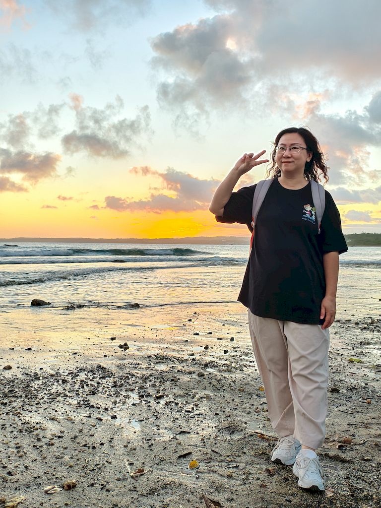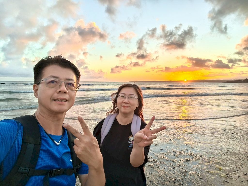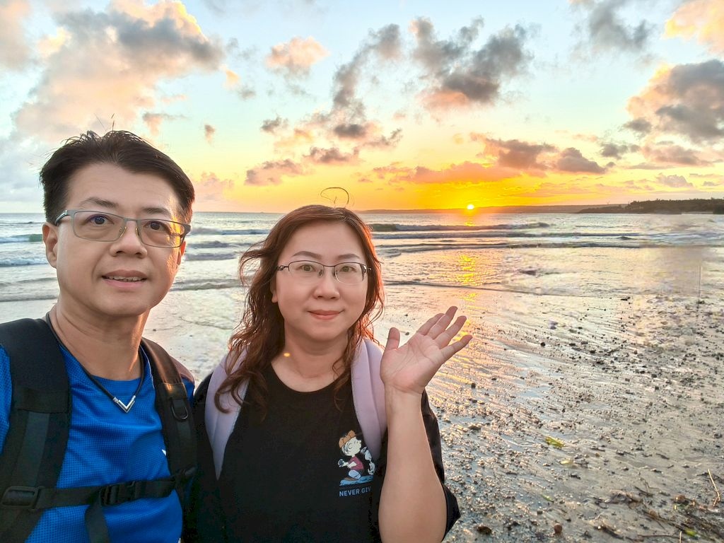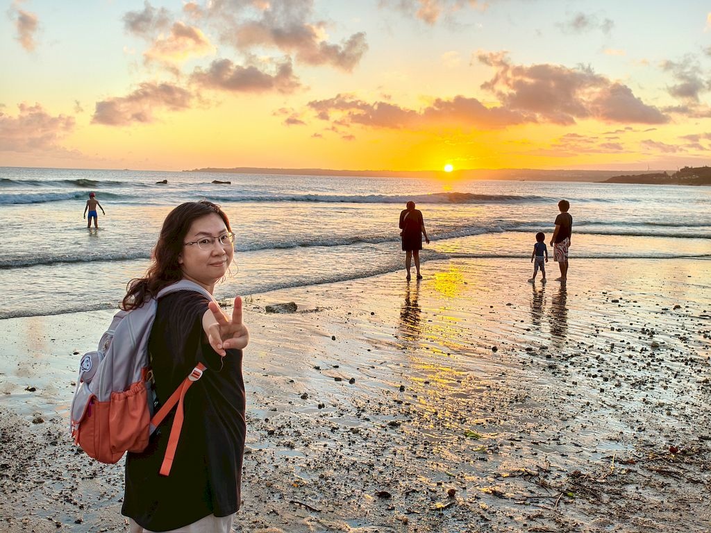 時間還來得及,我們趕緊走到沙灘,剛剛好趕上日落時刻,畫面太美,太幸運啦~😘