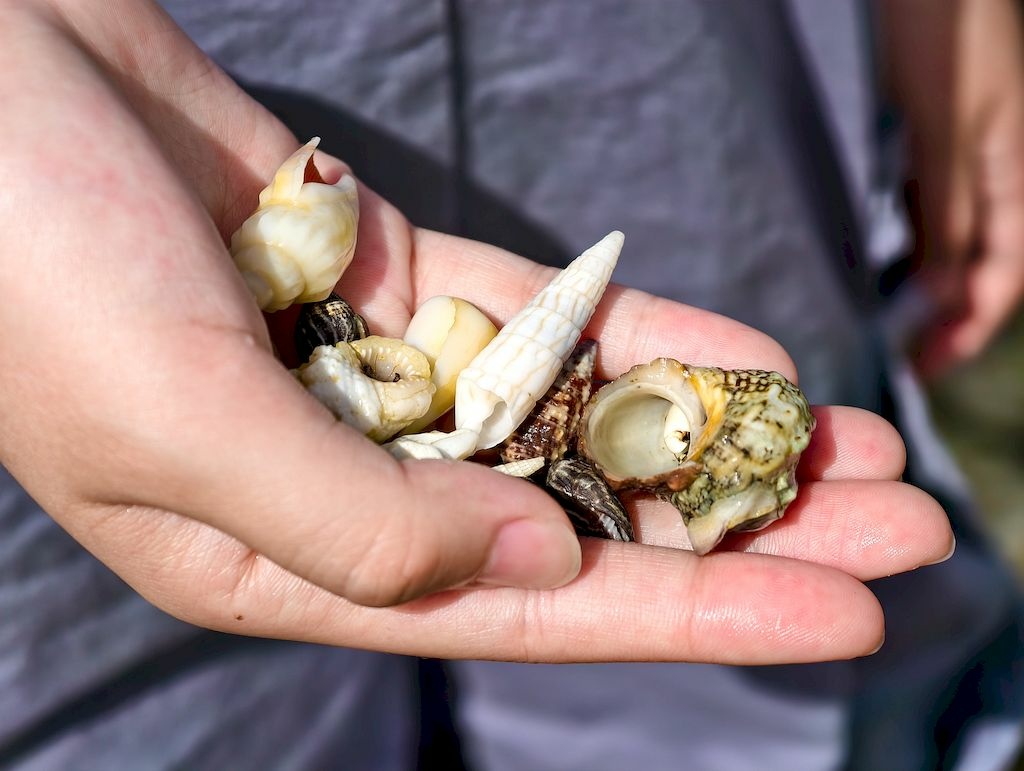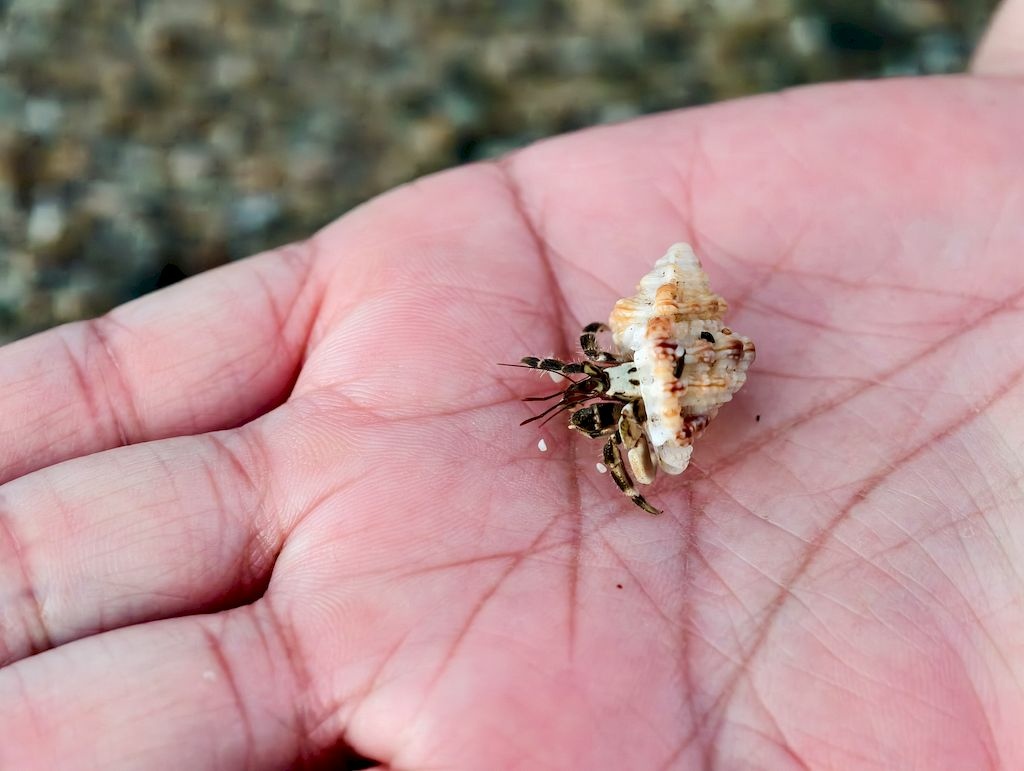 砂島貝殼沙灘,很多寄居蟹。