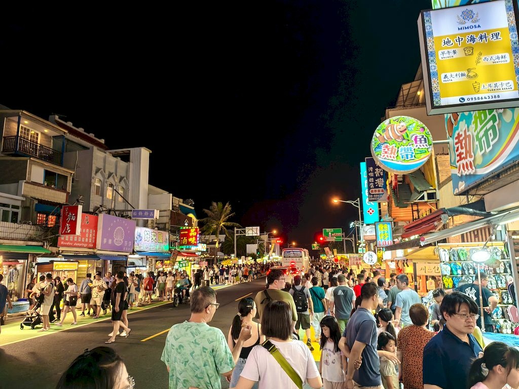晚上的墾丁大街人山人海!