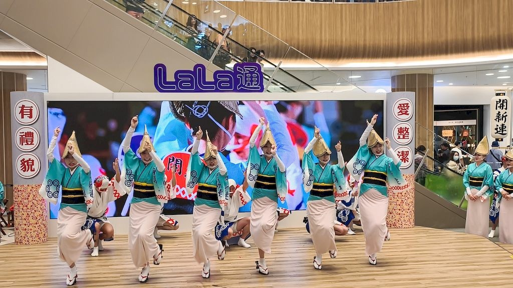 國慶連假的最後一天,天氣依然炎熱,我們在Lalaport裡面吹冷氣,逛街、購物、吃飯、喝咖啡、吃甜點,待了一整天。很意外也很幸運地看到了日本傳統阿波舞表演。