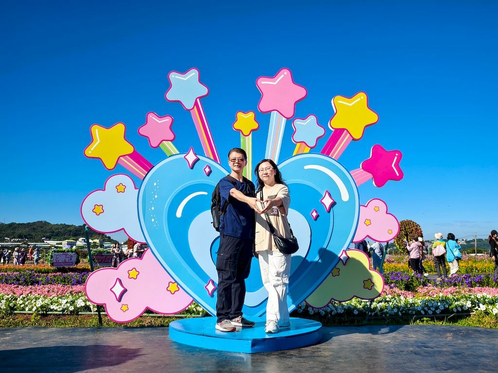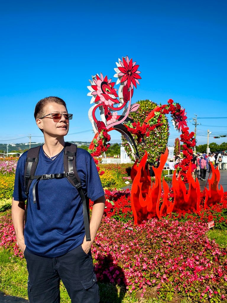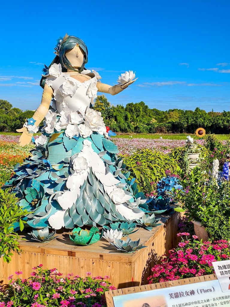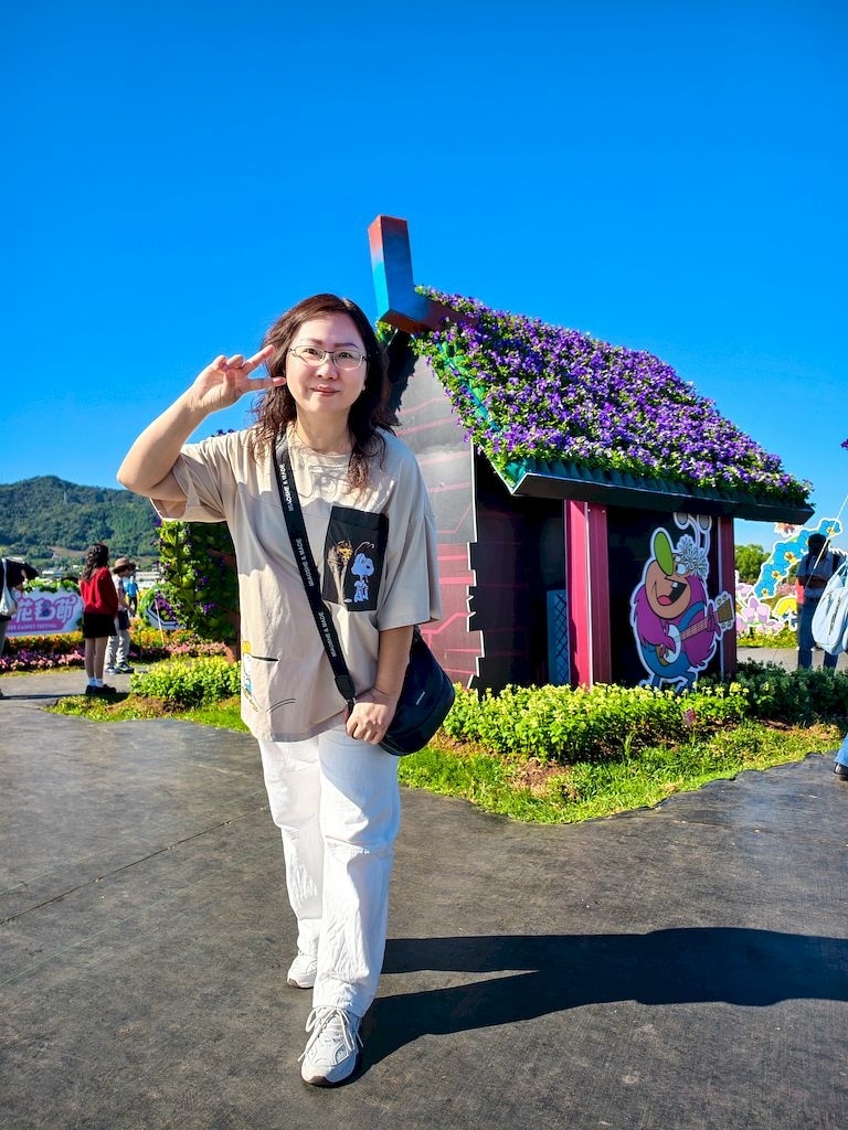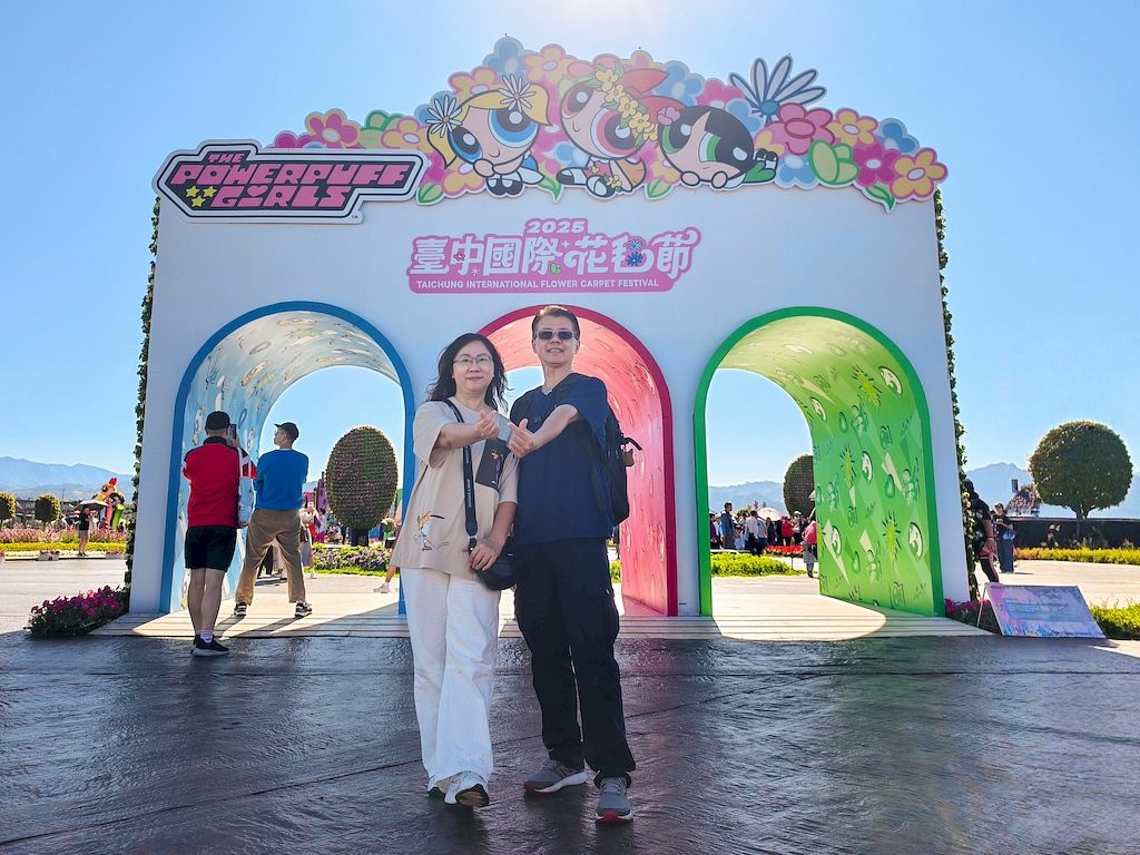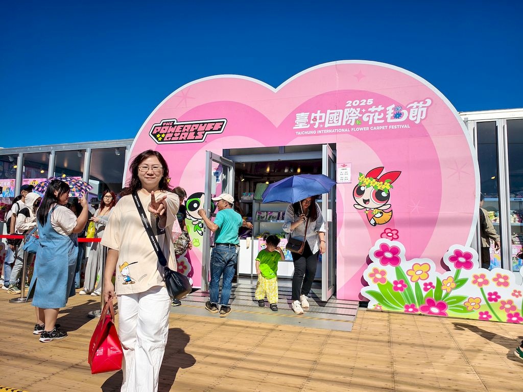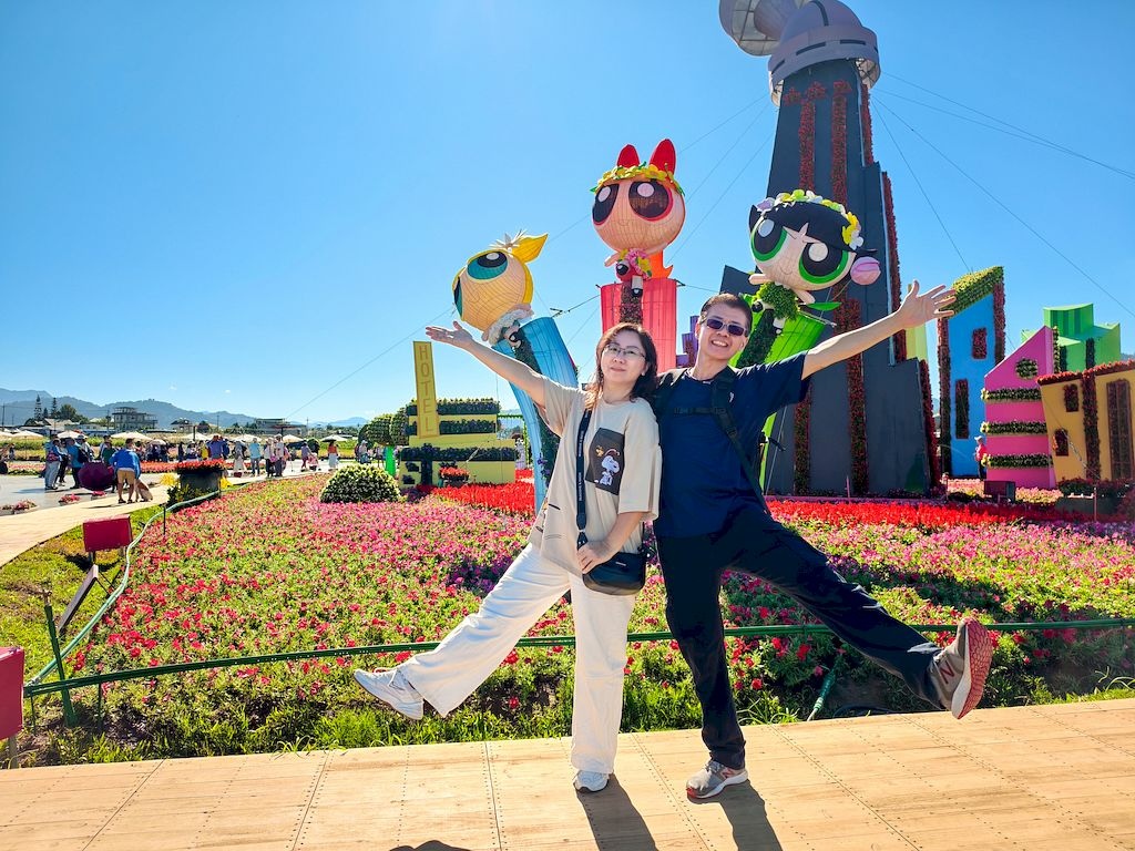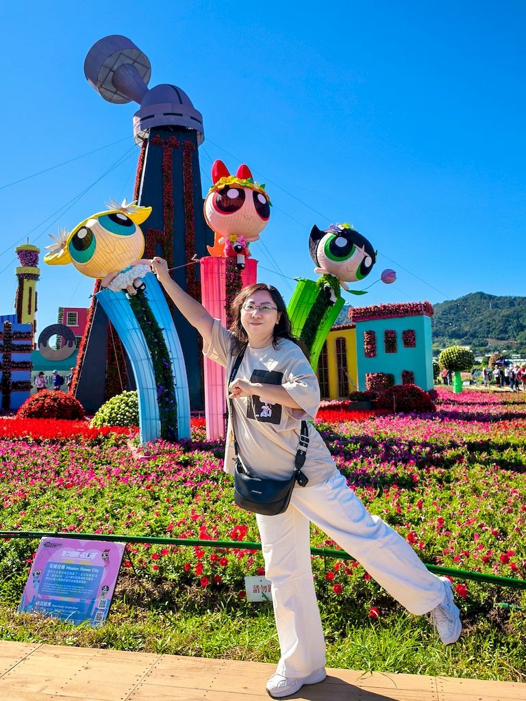 「臺中國際花毯節」(新社花海)是台中每年的花卉盛典,今年裝置設計以「飛天小女警」為主題,將動畫元素與花卉藝術結合,特別打造了歷屆規模最大的主花毯,高18米、直徑60米,其中以魔人啾啾的基地為裝置的最高點。