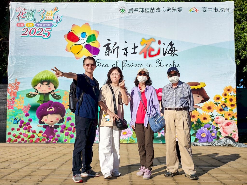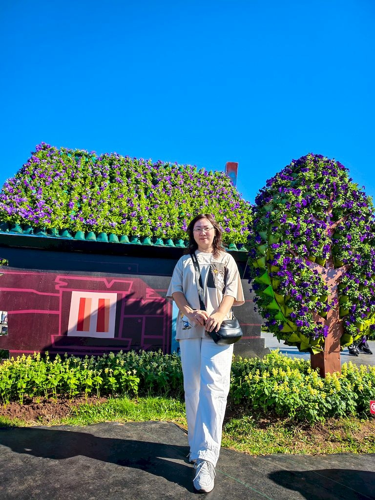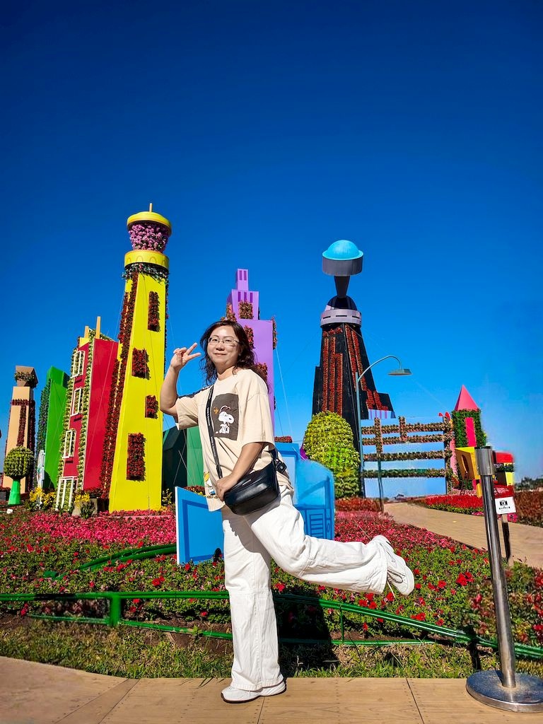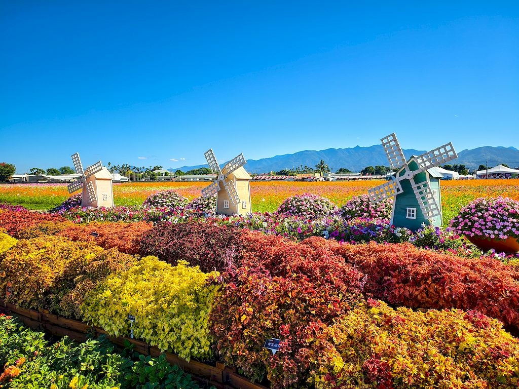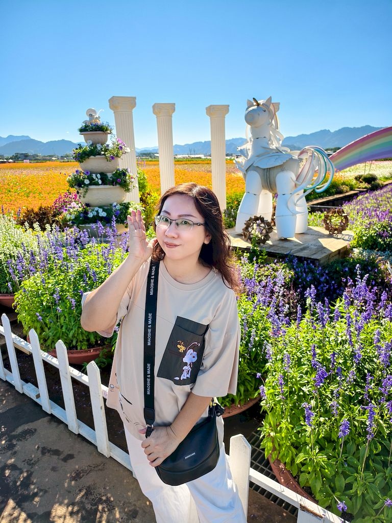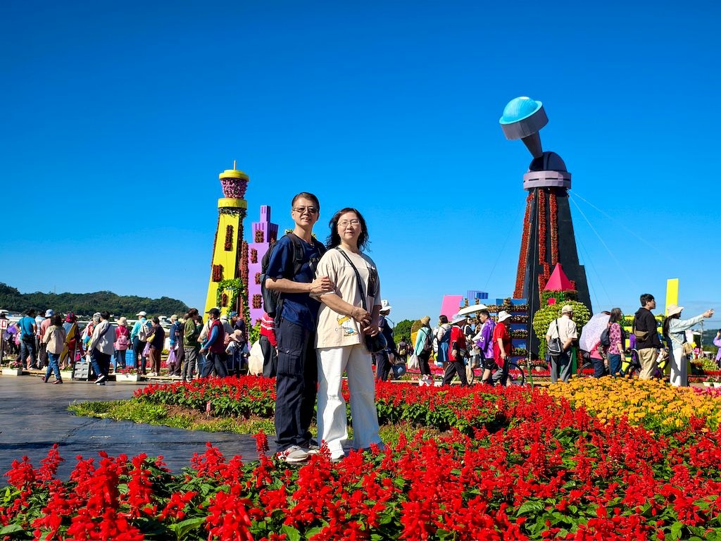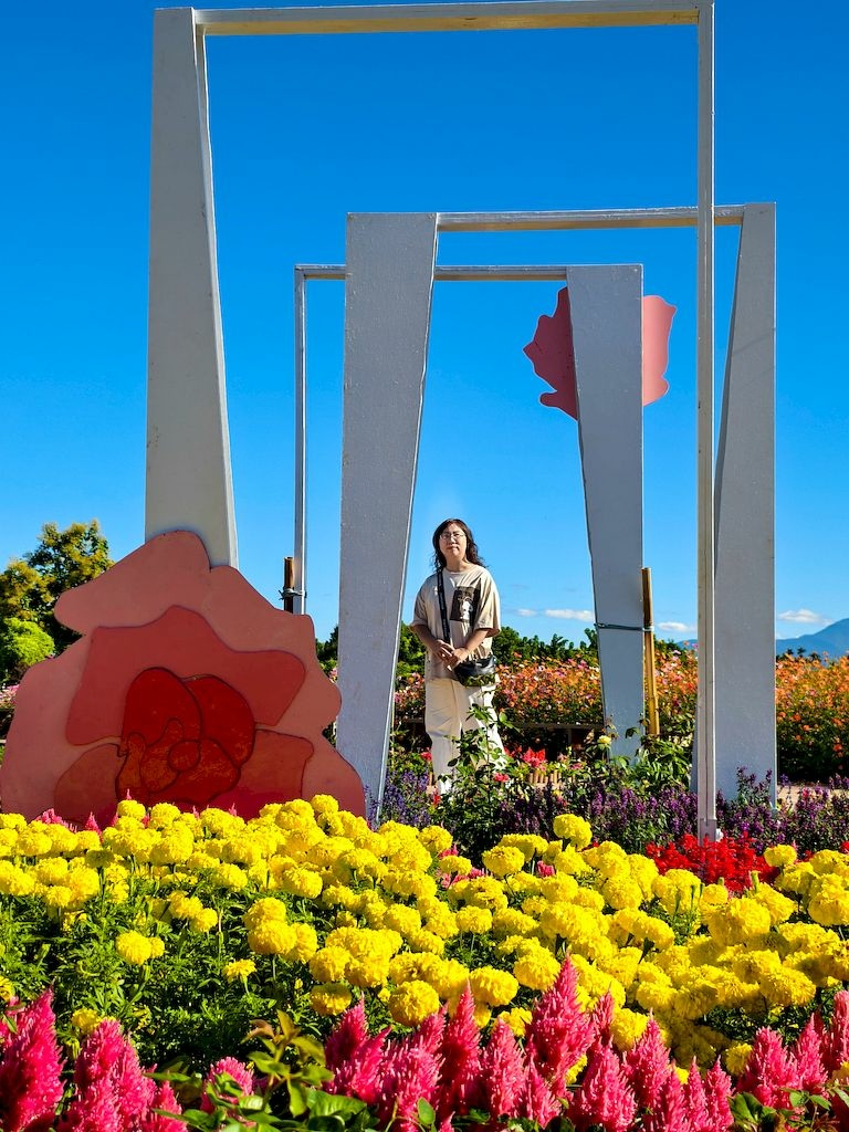 「臺中國際花毯節」(新社花海)是台中每年的花卉盛典,今年裝置設計以「飛天小女警」為主題,將動畫元素與花卉藝術結合,特別打造了歷屆規模最大的主花毯,高18米、直徑60米,其中以魔人啾啾的基地為裝置的最高點。