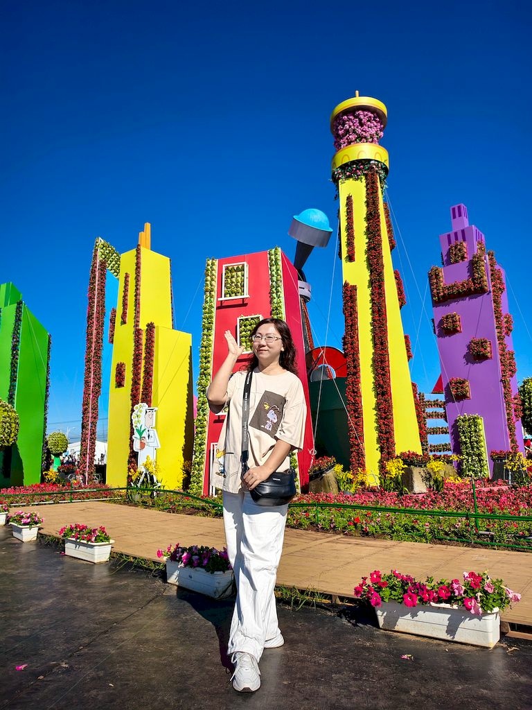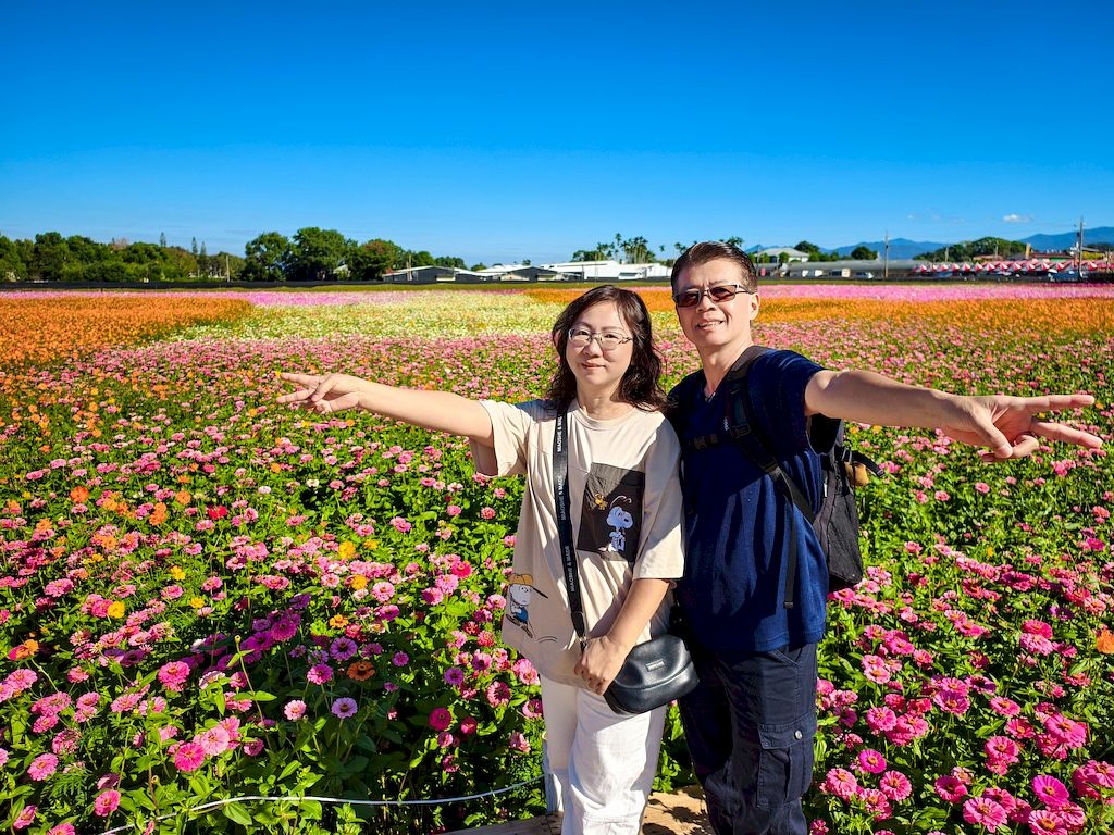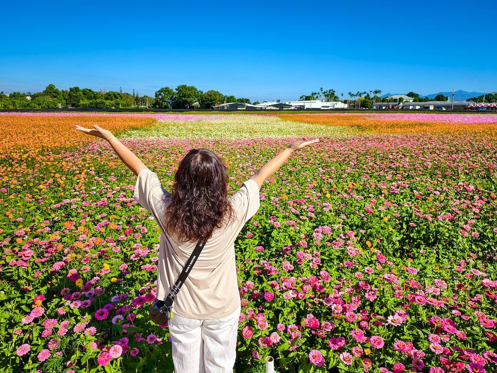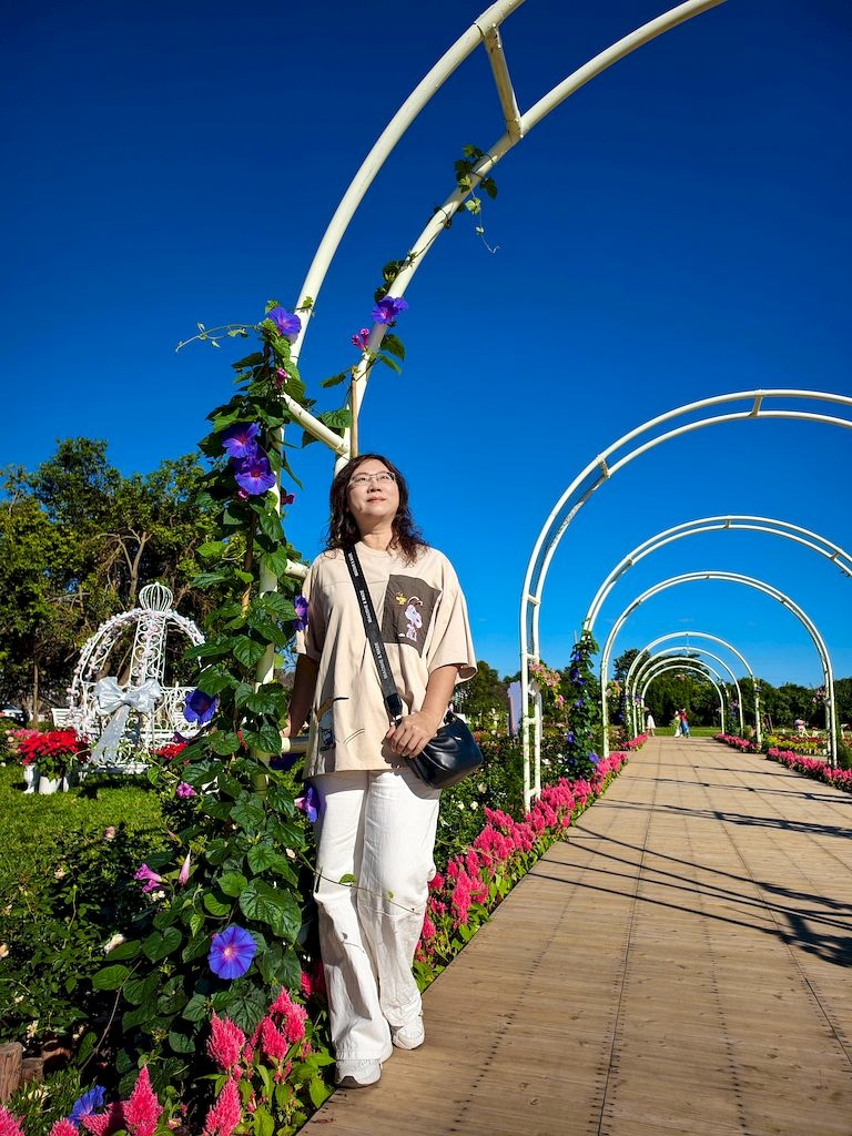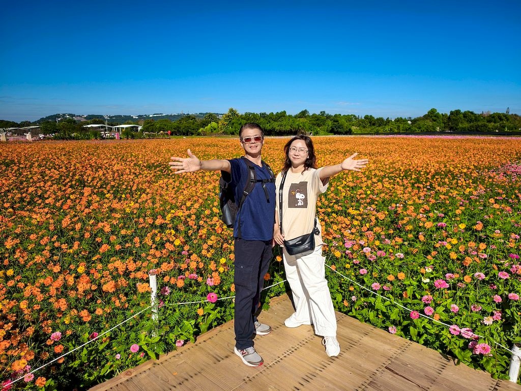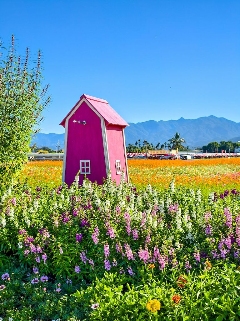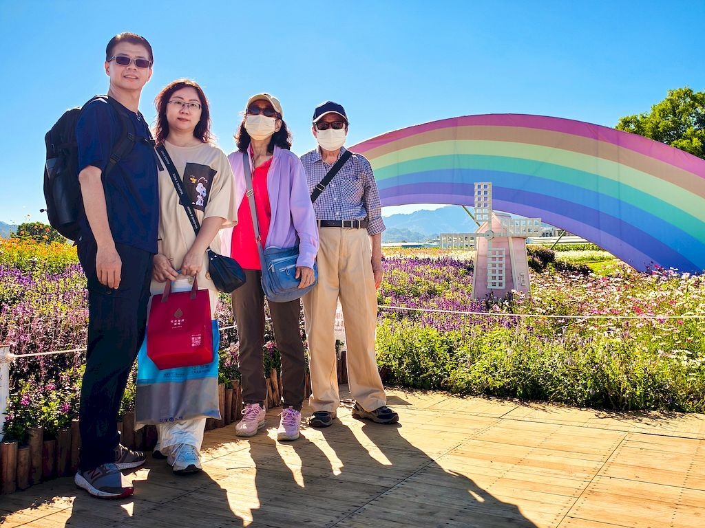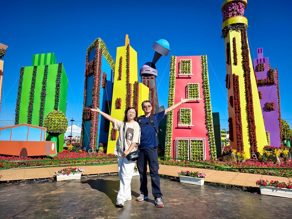 「臺中國際花毯節」(新社花海)是台中每年的花卉盛典,今年裝置設計以「飛天小女警」為主題,將動畫元素與花卉藝術結合,特別打造了歷屆規模最大的主花毯,高18米、直徑60米,其中以魔人啾啾的基地為裝置的最高點。